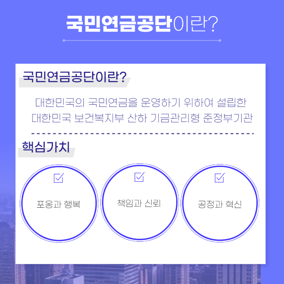 본문 시작 홈으로 커뮤니티 학과소개 교수소개 교육과정 현장실습 및 취업정보 커뮤니티 홈페이지가이드 학생 소통 광장 학과공지 학사일정 학생회 동아리 학생 소통 광장 포토갤러리 전공자료실 서식자료실 학생 소통 광장 페이스북 트위터 프린트 세명대학교 사회복지학과 졸업 후 진로 국민연금 편 사회복지학과 2828 2022-07-25 세명대학교 사회복지학과 졸업 후 진로 국민연금 편입니다 목록 이전세명대학교 사회복지학과 졸업 후 진로 국민건강보험공단 편 다음 세명대학교 사회복지학과 졸업 후 질로 근로복지공단 편 담당부서 : 사회복지학과 담당자 : - 연락처 : 043-649-1799 최종수정일 : 2024-10-26 만족도조사 만족도 조사 이 페이지에서 제공하는 정보에 대하여 만족하시나요? 매우만족 만족 보통 불만족 매우불만족