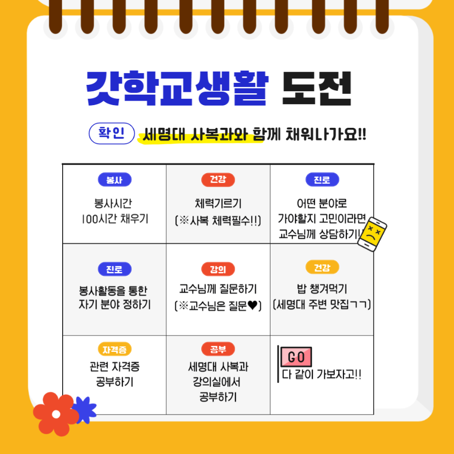 본문 시작 홈으로 커뮤니티 학과소개 교수소개 교육과정 현장실습 및 취업정보 커뮤니티 홈페이지가이드 학생 소통 광장 학과공지 학사일정 학생회 동아리 학생 소통 광장 포토갤러리 전공자료실 서식자료실 학생 소통 광장 페이스북 트위터 프린트 세명대학교사회복지학과 궁금한 학교생활 알아보기 빙고 사회복지학과 2726 2023-01-31 오늘은 세명대학교 사회복지학과 궁금한 학교생활 알아보기 빙고편입니다. 목록 이전정규형 교수님 교과목 소개 다음 세명대학교 사회복지학과 유용식 교수님 알아보기 편 담당부서 : 사회복지학과 담당자 : - 연락처 : 043-649-1799 최종수정일 : 2024-10-26 만족도조사 만족도 조사 이 페이지에서 제공하는 정보에 대하여 만족하시나요? 매우만족 만족 보통 불만족 매우불만족