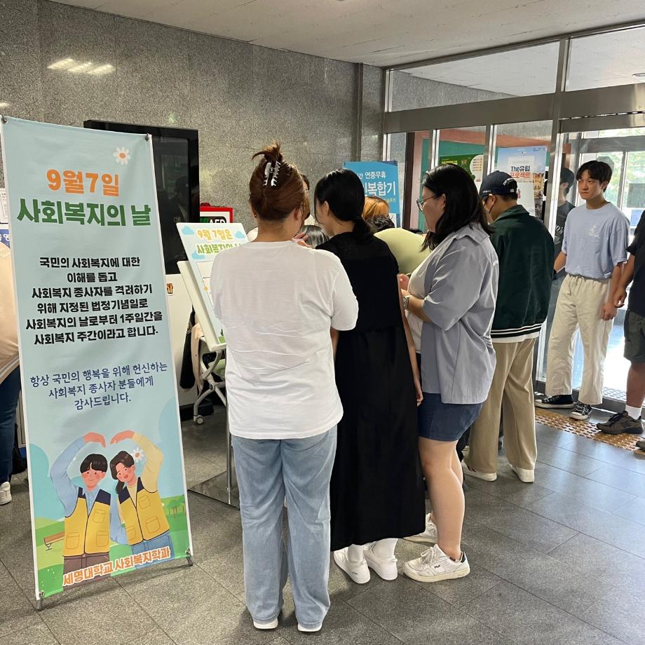 본문 시작 홈으로 커뮤니티 학과소개 교수소개 교육과정 현장실습 및 취업정보 커뮤니티 홈페이지가이드 학생 소통 광장 학과공지 학사일정 학생회 동아리 학생 소통 광장 포토갤러리 전공자료실 서식자료실 학생 소통 광장 페이스북 트위터 프린트 사회복지의날 행사 진행 사회복지학과 3623 2023-09-07 사회복지의날을 맞아 캠페인을 진행하였습니다. 목록 이전세명대 사회복지학과 우리 동아리 궁금하지4? 다음 세명대 사회복지학과 우리 동아리 궁금하지5? 담당부서 : 사회복지학과 담당자 : - 연락처 : 043-649-1799 최종수정일 : 2024-10-26 만족도조사 만족도 조사 이 페이지에서 제공하는 정보에 대하여 만족하시나요? 매우만족 만족 보통 불만족 매우불만족