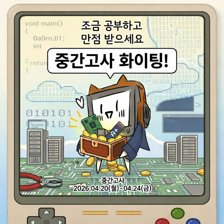 본문 시작 홈으로 학부활동 학부소개 학부활동 교육과정 커뮤니티 학부생활 입학안내 홈페이지가이드 학부갤러리 학부행사 학생회 활동 전공 동아리 학부갤러리 학부갤러리 페이스북 트위터 프린트 🔥🔥 중간고사 모드 ON 🔥🔥 컴퓨터학부 51 2026-04-20 중간고사 기간 : 4/20 ~ 4/24 지금까지 해온 것만으로도 충분합니다 조금만 더 힘내서, 끝까지 파이팅 💪 목록 이전IT 에서 AI로, "AI융합대학" 으로 바뀌었습니다. 다음 🌸 세명대에 봄이 로그인했습니다 🌸 담당부서 : 컴퓨터학부 담당자 : - 연락처 : 043-649-1272 최종수정일 : 2024-10-26 만족도조사 만족도 조사 이 페이지에서 제공하는 정보에 대하여 만족하시나요? 매우만족 만족 보통 불만족 매우불만족