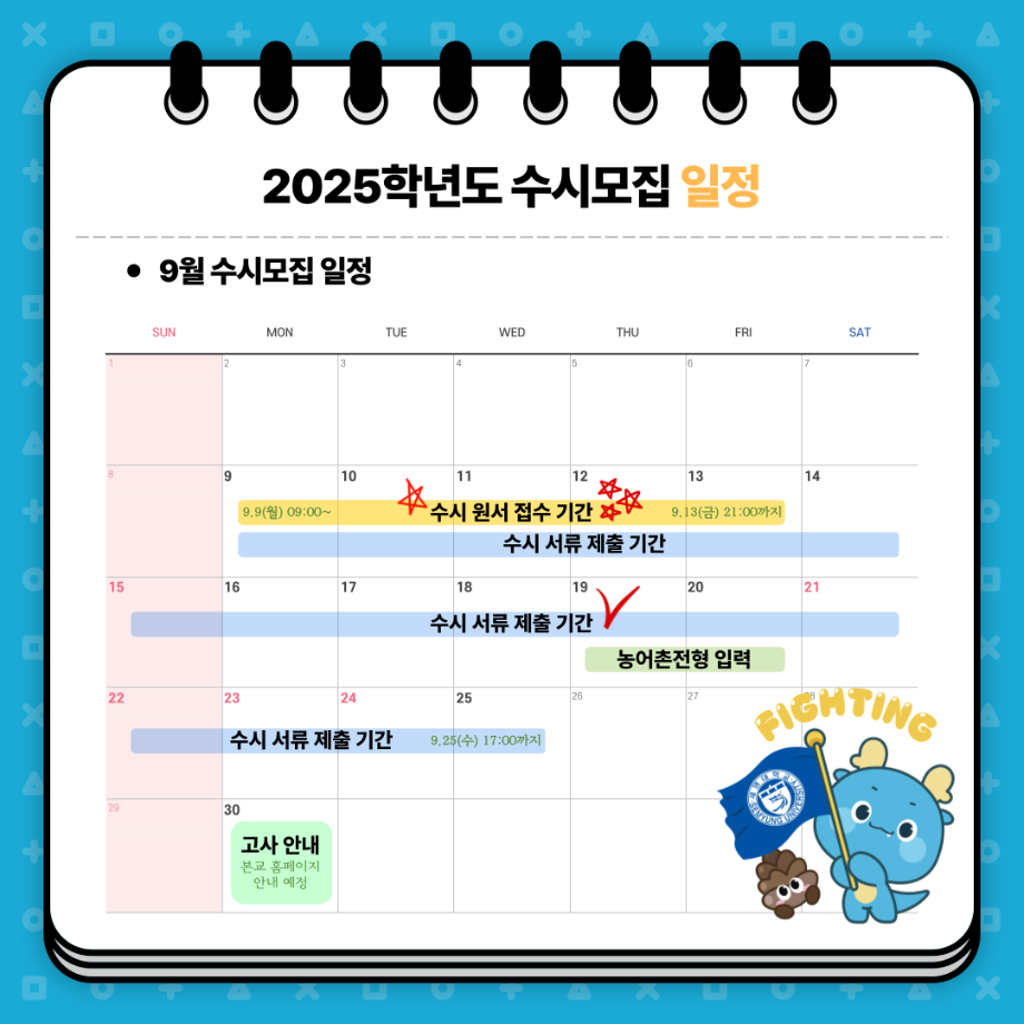 2. 수시모집 원서접수 : 2024. 9. 9.(월) 09:00 ~ 9.13.(금) 21:00까지