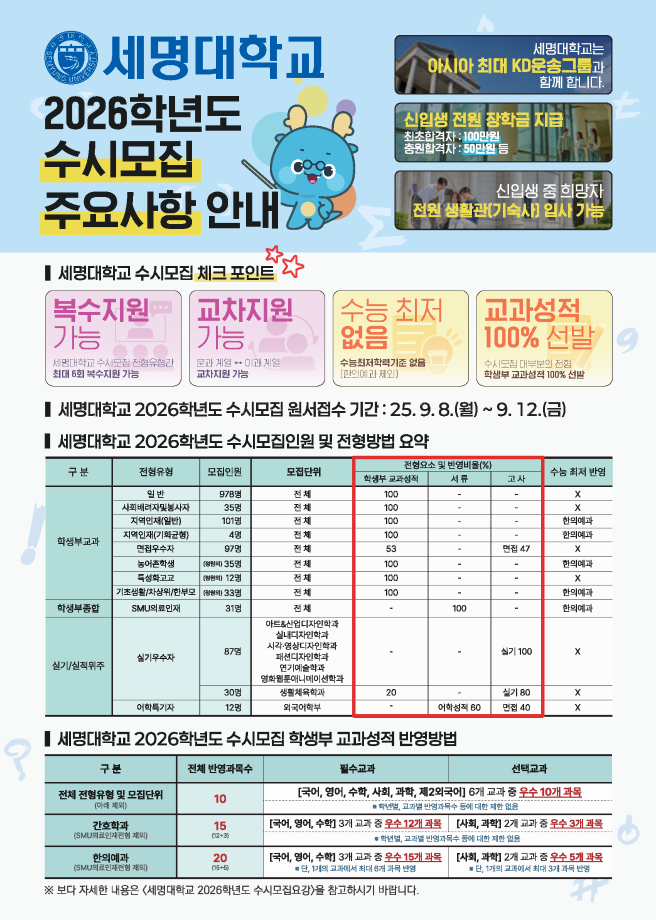 본문 시작 홈으로 학부활동 학부소개 학부활동 교육과정 커뮤니티 학부생활 입학안내 홈페이지가이드 학부갤러리 학부행사 학생회 활동 전공 동아리 학부갤러리 학부갤러리 페이스북 트위터 프린트 2026학년도 수시모집 주요사항 전체관리자 1382 2025-09-03 2026학년도 수시모집 주요사항 안내 목록 이전컴퓨터학부 소개 다음 컴퓨터학부 윈도우즈프로그래밍 전공 실습 담당부서 : 컴퓨터학부 담당자 : - 연락처 : 043-649-1272 최종수정일 : 2024-10-26 만족도조사 만족도 조사 이 페이지에서 제공하는 정보에 대하여 만족하시나요? 매우만족 만족 보통 불만족 매우불만족