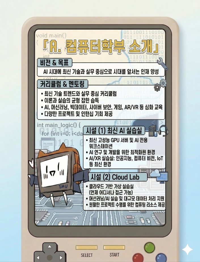 본문 시작 홈으로 학부활동 학부소개 학부활동 교육과정 커뮤니티 학부생활 입학안내 홈페이지가이드 학부갤러리 학부행사 학생회 활동 전공 동아리 학부갤러리 학부갤러리 페이스북 트위터 프린트 2026년 컴퓨터학부 소개 컴퓨터학부 165 2026-03-24 2026학년도 컴퓨터학부를 소개부터 학교 생활에 필요에 대한 가이드까지 안내해드립니다 목록 이전2026학년 신입생 환영회 다음 IT 에서 AI로, "AI융합대학" 으로 바뀌었습니다. 담당부서 : 컴퓨터학부 담당자 : - 연락처 : 043-649-1272 최종수정일 : 2024-10-26 만족도조사 만족도 조사 이 페이지에서 제공하는 정보에 대하여 만족하시나요? 매우만족 만족 보통 불만족 매우불만족