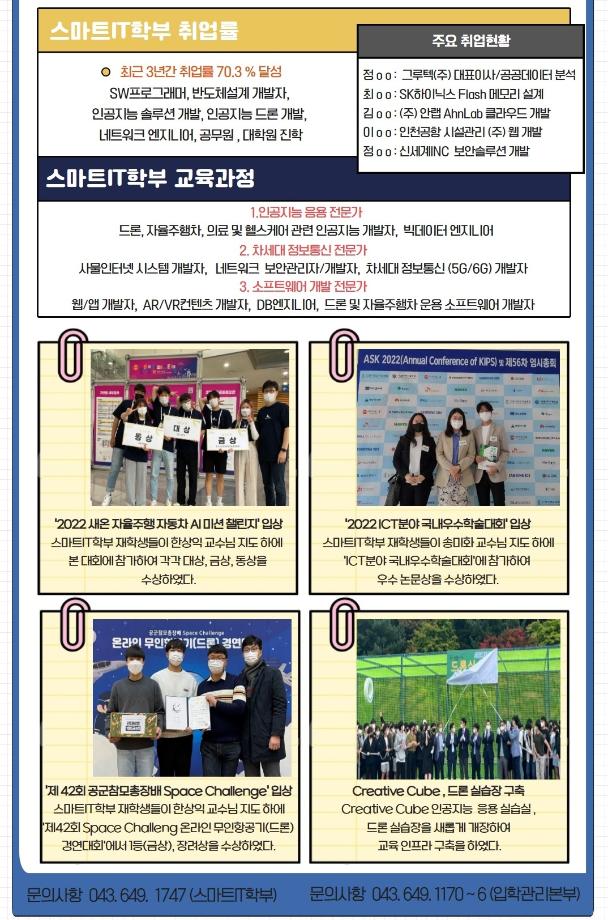스마트IT학부 : 043-649-1747 (평일 09시~18시, 방학 : 09시~17시, 점심시간 12~13시)