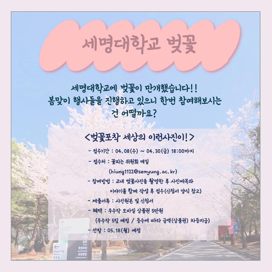 본문 시작 홈으로 SMIT 소식 SMIT 소개 SMIT 교육 SMIT 취업 SMIT 소식 SMIT 입학 홈페이지가이드 갤러리 공지사항 갤러리 경진대회 동아리 갤러리 페이스북 트위터 프린트 세명대알림_4월(2) : 세명대학교 벚꽃 스마트IT학부 38 2026-04-14 세명대알림_4월(2) : 세명대학교 벚꽃 목록 이전세명대알림_4월(1) : 2026학년도 1학기 중간고사 다음 스마트IT알림_4월 : 스마트IT학부 졸업요건 담당부서 : 스마트IT학부 담당자 : - 연락처 : 043-649-1275 최종수정일 : 2024-10-26 만족도조사 만족도 조사 이 페이지에서 제공하는 정보에 대하여 만족하시나요? 매우만족 만족 보통 불만족 매우불만족
