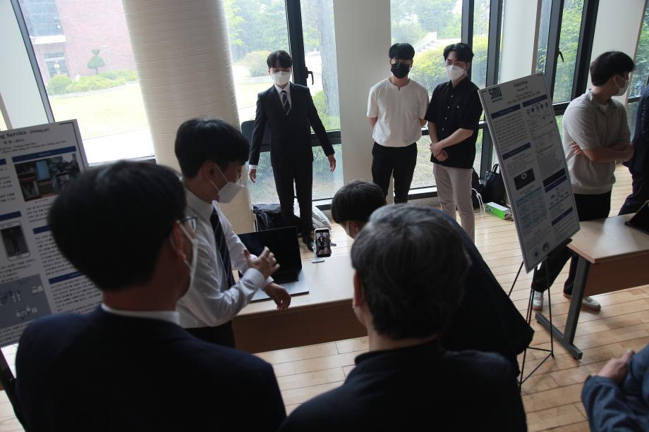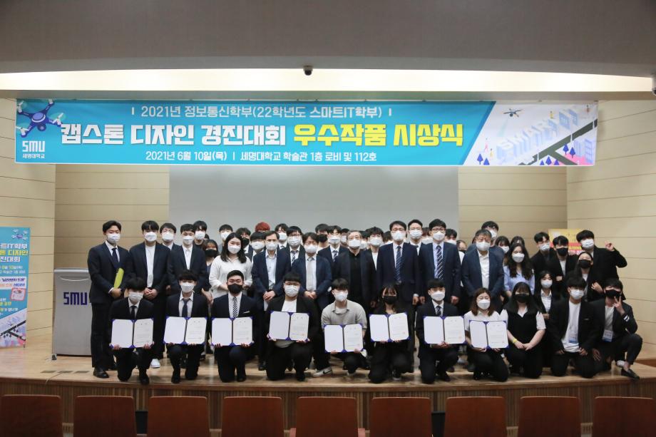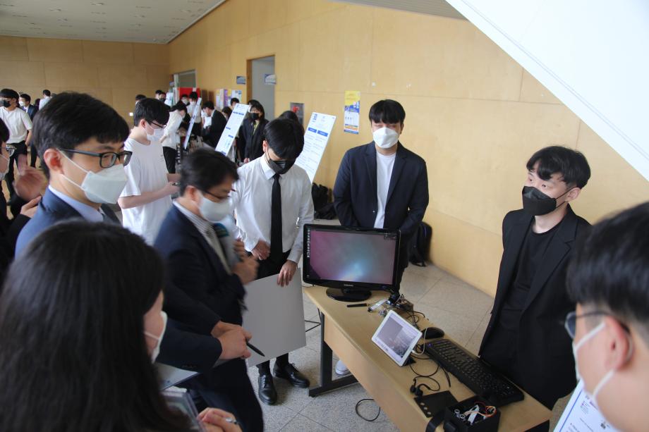 본문 시작 홈으로 SMIT 소식 SMIT 소개 SMIT 교육 SMIT 취업 SMIT 소식 SMIT 입학 홈페이지가이드 갤러리 공지사항 갤러리 경진대회 동아리 갤러리 페이스북 트위터 프린트 2021학년도 스마트IT학부 캡스톤디자인 경진대회 정보통신학부 4605 2021-06-10 2021년 06월 10일 정보통신학부에서는 캡스톤디자인 경진대회를 학술관1층 로비에서 진행하였습니다. 4학년 재학생들이 4년동안 학습한 지식의 미무리 단계로서 1년 동안 준비한 작품을 교수님들께 설명과 함께 시연하고 교수님들의 평가 후 우수작품을 선정하여 학술관112호에서 시상하였다. 캡스톤디자인 결과발표회를 통해서 재학생들은 산업현장에서 진행해야 하는 프로젝트 업무를 간접적으로 느낄 수 있는 뜻 깊은 자리 였습니다. 목록 이전스마트IT학부 홍보팀 “스마트하랑”발대식 다음 2022학년도 스마트IT학부 리플렛 담당부서 : 스마트IT학부 담당자 : - 연락처 : 043-649-1275 최종수정일 : 2024-10-26 만족도조사 만족도 조사 이 페이지에서 제공하는 정보에 대하여 만족하시나요? 매우만족 만족 보통 불만족 매우불만족