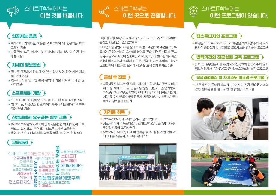 본문 시작 홈으로 SMIT 소식 SMIT 소개 SMIT 교육 SMIT 취업 SMIT 소식 SMIT 입학 홈페이지가이드 갤러리 공지사항 갤러리 경진대회 동아리 갤러리 페이스북 트위터 프린트 2022학년도 스마트IT학부 리플렛 정보통신학부 4646 2021-07-12 발은 땅에, 꿈은 원대하게, 준비는 세명대 스마트IT학부에서. 목록 이전2021학년도 스마트IT학부 캡스톤디자인 경진대회 다음 1차 제천제일고등학교 "드론 코딩하고 비행 체험하기" 담당부서 : 스마트IT학부 담당자 : - 연락처 : 043-649-1275 최종수정일 : 2024-10-26 만족도조사 만족도 조사 이 페이지에서 제공하는 정보에 대하여 만족하시나요? 매우만족 만족 보통 불만족 매우불만족