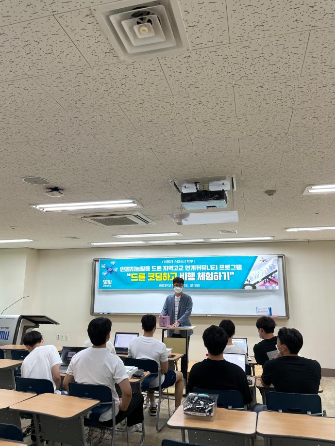 본문 시작 홈으로 SMIT 소식 SMIT 소개 SMIT 교육 SMIT 취업 SMIT 소식 SMIT 입학 홈페이지가이드 갤러리 공지사항 갤러리 경진대회 동아리 갤러리 페이스북 트위터 프린트 1차 제천제일고등학교 "드론 코딩하고 비행 체험하기" 정보통신학부 3936 2021-08-02 “ 인공지능활용 드론 지역고교 연계커뮤니티 프로그램 - 드론 코딩하고 비행 체험하기 ” 07월 19일(월) 학술관 101호에서 스마트IT학부는 “드론 코딩하고 비행 체험하기” 프로그램을 진행하였다. 해당 프로그램은 8월19일(목) 진행 예정인 “2021SM스마트 드론 레이싱 경진대회”와 관련하여 신청자중 사전 교육을 희망하는 팀을 대상으로 하여 진행되었으며 참여 학생들은 높은 만족도를 보였다. 참여고등학교 : 제천제일고등학교 목록 이전2022학년도 스마트IT학부 리플렛 다음 2차 디지털전자고등학교, 세명고등학교 "드론 코딩하고 비행 체험하기" 담당부서 : 스마트IT학부 담당자 : - 연락처 : 043-649-1275 최종수정일 : 2024-10-26 만족도조사 만족도 조사 이 페이지에서 제공하는 정보에 대하여 만족하시나요? 매우만족 만족 보통 불만족 매우불만족
