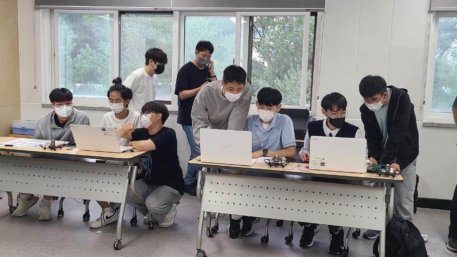 본문 시작 홈으로 SMIT 소식 SMIT 소개 SMIT 교육 SMIT 취업 SMIT 소식 SMIT 입학 홈페이지가이드 갤러리 공지사항 갤러리 경진대회 동아리 갤러리 페이스북 트위터 프린트 스마트IT학부 제천고등학교와 자연이공 과학 DCT프로젝트 특강 시행 스마트IT학부 4902 2022-09-16 2022.09.14(수) 첨단정보학관 406호에서 제천고등학교와 자연이공 과학 DCT프로젝트 특강을 시행했다. 제천고등학교 1학년 제천고등학교 과학반 실험실습동아리 학생 12명이 참여했다. 코딩으로 드론을 날리는 활동을 했으며, 학부학생들이 참여했다. 학생들에게 스마트IT학부를 홍보하고 입학홍보를 하는 유익한 시간이었다. 목록 이전스마트IT학부 일보 다음 스마트IT학부 신입생 환영기념 체육대회 개최 담당부서 : 스마트IT학부 담당자 : - 연락처 : 043-649-1275 최종수정일 : 2024-10-26 만족도조사 만족도 조사 이 페이지에서 제공하는 정보에 대하여 만족하시나요? 매우만족 만족 보통 불만족 매우불만족