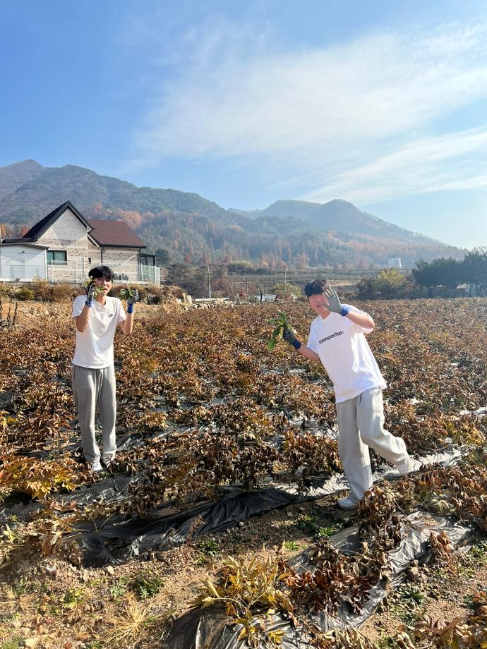 본문 시작 홈으로 SMIT 소식 SMIT 소개 SMIT 교육 SMIT 취업 SMIT 소식 SMIT 입학 홈페이지가이드 갤러리 공지사항 갤러리 경진대회 동아리 갤러리 페이스북 트위터 프린트 스마트IT학부 농활활동 시행 스마트IT학부 4835 2022-11-12 스마트IT학부는 2022.11.12(토)에 재학생 봉사활동을 다녀왔다. 제천시 백운면에서 활동이 이루어졌으며, 작약밭에서 잡초를 재거하는 활동을 하였다. 재학생 31명과 권혁민 교수님이 참여했다. 재학생들은 협동심을 발휘하여 농가 일손을 도우며 봉사의 의미를 새길 수 있었으며, 친구들과의 우정을 쌓을 수 있었다. 목록 이전스마트IT학부 학부MT개최 다음 스마트IT학부 'I&U프로그램' 시행 담당부서 : 스마트IT학부 담당자 : - 연락처 : 043-649-1275 최종수정일 : 2024-10-26 만족도조사 만족도 조사 이 페이지에서 제공하는 정보에 대하여 만족하시나요? 매우만족 만족 보통 불만족 매우불만족