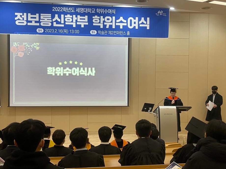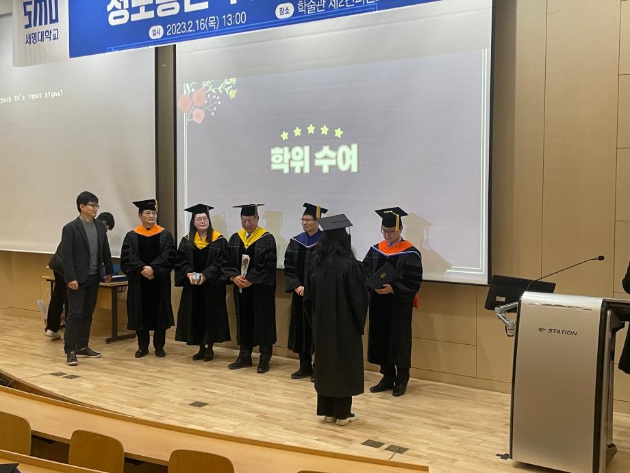 본문 시작 홈으로 SMIT 소식 SMIT 소개 SMIT 교육 SMIT 취업 SMIT 소식 SMIT 입학 홈페이지가이드 갤러리 공지사항 갤러리 경진대회 동아리 갤러리 페이스북 트위터 프린트 스마트IT학부 전기 학위수여식 스마트IT학부 4428 2023-02-16 스마트IT학부는 2023년 2월16일(목) 학술관 제2컨퍼런스 홀에서 전기 학위 수여식이 진행되었다. 학위 수여식은 교수님들의 학사행렬 입장으로 시작 되었으며. 학부장님의 학위수여식사, 학위 수여, 마무리 행사로 학사모 던지기로 진행되었다. 조면균 학부장님은 "드높은 자존감을 갖고 사회생활을 하며 미래 비전과 목표를 설정하고 성실한 사람이 되길 바란다" 라고 전했다. 목록 이전스마트IT학부 동계방학 특별활동 시행 다음 2023학년도 꿈 설계학기 1일차 담당부서 : 스마트IT학부 담당자 : - 연락처 : 043-649-1275 최종수정일 : 2024-10-26 만족도조사 만족도 조사 이 페이지에서 제공하는 정보에 대하여 만족하시나요? 매우만족 만족 보통 불만족 매우불만족