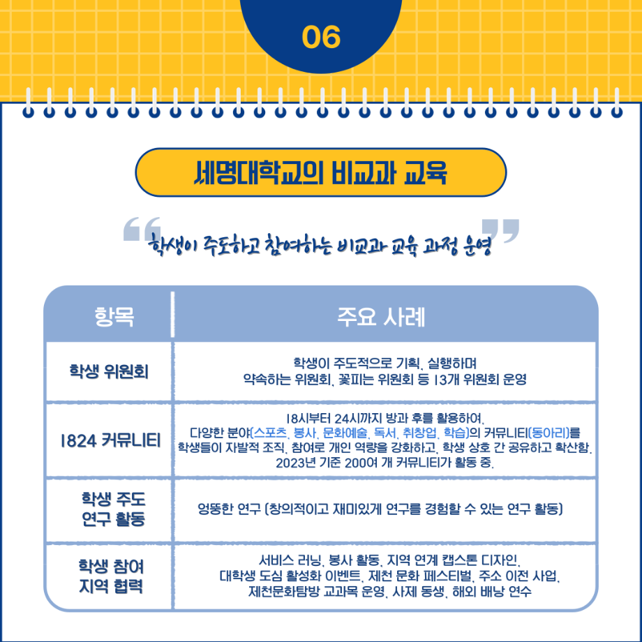 💌 세명대학교의 우수한 교육의 질을 다양한 학생들에게 경험시키기 위한 제도, 그에 따른 세명대의 교육 자신감 표현