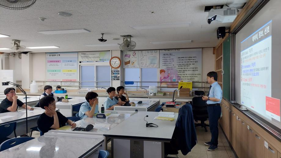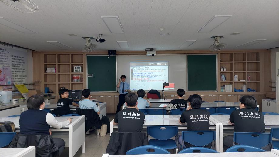 본문 시작 홈으로 SMIT 소식 SMIT 소개 SMIT 교육 SMIT 취업 SMIT 소식 SMIT 입학 홈페이지가이드 갤러리 공지사항 갤러리 경진대회 동아리 갤러리 페이스북 트위터 프린트 제천고등학교 자연이공 아카데미 스마트IT학부 6839 2023-05-26 조면균 교수는 2023년 5월 18일 제천고등학교가 주최하는 자연과학아카데미 특강에서 "생활속의 첨단정보통신 기술"이라는 제목으로 특강을 진행하였다. 과학융합부장 선생님을 비롯한 8명의 학생들이 참석하여 생활속에서 겪는 재미있는 통신기술에 대해서 배우고 세명대 스마트IT학부의 소개도 받는 유익한 시간이었다. 목록 이전스마트IT학부 MT 개최 다음 스마트IT로 너와 나를 IT(잇)다 ! 담당부서 : 스마트IT학부 담당자 : - 연락처 : 043-649-1275 최종수정일 : 2024-10-26 만족도조사 만족도 조사 이 페이지에서 제공하는 정보에 대하여 만족하시나요? 매우만족 만족 보통 불만족 매우불만족