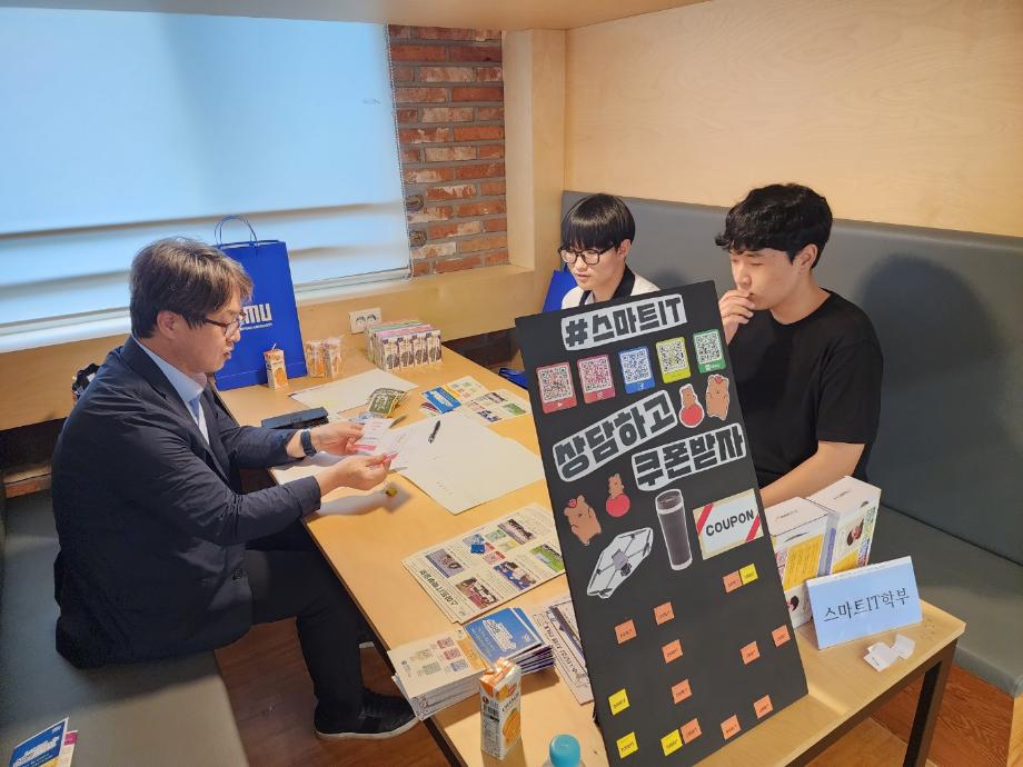 본문 시작 홈으로 SMIT 소식 SMIT 소개 SMIT 교육 SMIT 취업 SMIT 소식 SMIT 입학 홈페이지가이드 갤러리 공지사항 갤러리 경진대회 동아리 갤러리 페이스북 트위터 프린트 세명고등학교 입시박람회 시행 스마트IT학부 5222 2023-07-17 스마트IT학부는 2023.07.13(목) 세명고등학교에서 진행하는 세명고 박람회에 참가하였다. 학생들이 자유롭게 입시상담 부스에 방문하여 스마트IT학부 입시 등에 대하여 조면균 교수님과 상담을 하였다. 상담을 받은 학생에 한하여 상품 경품을 진행하였다. 세명고 학생들에게 입시와 취업 전망 등에 대해 설명하는 유익한 시간이었다. 목록 이전스마트IT학부 제천제일고 내비게이션 특강 시행 다음 한상익 교수님 '산학협력단 감사의 글' 수여 담당부서 : 스마트IT학부 담당자 : - 연락처 : 043-649-1275 최종수정일 : 2024-10-26 만족도조사 만족도 조사 이 페이지에서 제공하는 정보에 대하여 만족하시나요? 매우만족 만족 보통 불만족 매우불만족