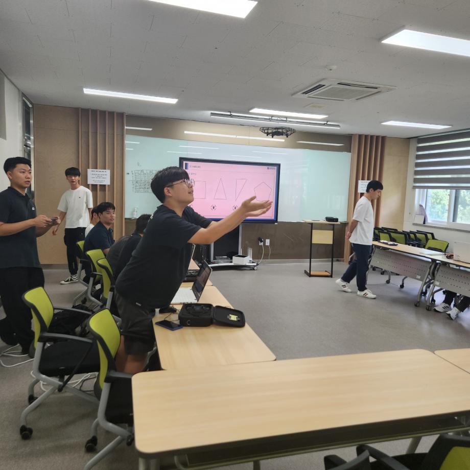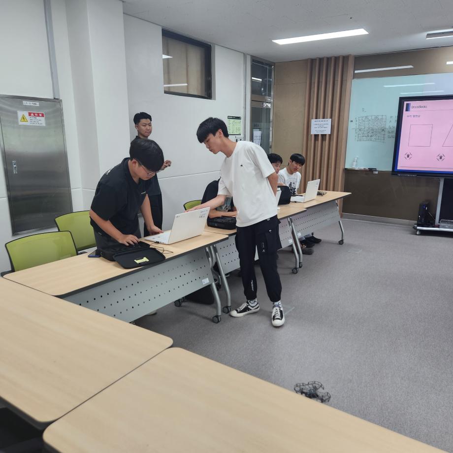 2023년 7월 27일(목)에는 세명고등학교 첫 번째 활동이 시행 되었으며, 오리엔테이션과 인공지능과 드론에 대한 기초적인 이론학습을 한 후 코딩 및 조종을 하는 실습활동을 하였다.