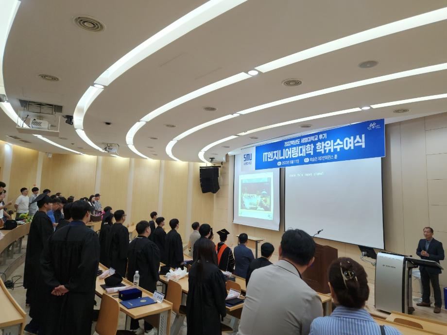 본문 시작 홈으로 SMIT 소식 SMIT 소개 SMIT 교육 SMIT 취업 SMIT 소식 SMIT 입학 홈페이지가이드 갤러리 공지사항 갤러리 경진대회 동아리 갤러리 페이스북 트위터 프린트 스마트IT학부 2022학년도 후기 학위수여식 스마트IT학부 7403 2023-08-11 스마트IT학부는 08월 11일(금) 학술관 102호에서 후기 학위수여식을 개최하였다. 후기 학위수여식은 IT엔지니어링 단과대학 주관으로 진행되었으며 스마트IT학부 6명의 졸업생이 학위를 수여받았다. 학위수여식에서 IT엔지니어링 단과대학 이완건 학장님과 총장님의 축사가 이루어졌다. 목록 이전스마트IT학부, "새온 자율주행 자동차 AI 미션 챌린지" 입상 다음 2023학년도 자기설계 해외배낭연수 담당부서 : 스마트IT학부 담당자 : - 연락처 : 043-649-1275 최종수정일 : 2024-10-26 만족도조사 만족도 조사 이 페이지에서 제공하는 정보에 대하여 만족하시나요? 매우만족 만족 보통 불만족 매우불만족