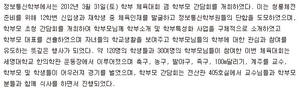 본문 시작 홈으로 SMIT 소식 SMIT 소개 SMIT 교육 SMIT 취업 SMIT 소식 SMIT 입학 홈페이지가이드 갤러리 공지사항 갤러리 경진대회 동아리 갤러리 페이스북 트위터 프린트 [ACE사업]책임지도 교수별 용두산 등반 및 자연정화 사업 시행 오선진 7211 2012-05-14 [ACE사업]책임지도 교수별 용두산 등반 및 자연정화 사업 시행 목록 이전2012년도 정보통신학부 체육대회 및 학부모 간담회 개최 다음 [ACE 취업역량강화사업] 졸업 선배 초청 취업특강 개최 담당부서 : 스마트IT학부 담당자 : - 연락처 : 043-649-1275 최종수정일 : 2024-10-26 만족도조사 만족도 조사 이 페이지에서 제공하는 정보에 대하여 만족하시나요? 매우만족 만족 보통 불만족 매우불만족
