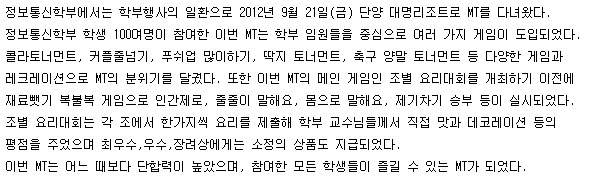 본문 시작 홈으로 SMIT 소식 SMIT 소개 SMIT 교육 SMIT 취업 SMIT 소식 SMIT 입학 홈페이지가이드 갤러리 공지사항 갤러리 경진대회 동아리 갤러리 페이스북 트위터 프린트 기업체험과 ACE 프로그램 일환 KT 견학 오선진 7413 2012-11-04 일시 : 2012년 10월 26일(금) 09:30 -18:00대상 : 정보통신학부 3,4학년 (70명)인솔 : 오선진 학부장, 이성재 교수출발장소 : 전산정보학관 앞 목록 이전2012년도 정보통신학부 연합 MT 다음 미드필더인증제 봉사활동 실시 담당부서 : 스마트IT학부 담당자 : - 연락처 : 043-649-1275 최종수정일 : 2024-10-26 만족도조사 만족도 조사 이 페이지에서 제공하는 정보에 대하여 만족하시나요? 매우만족 만족 보통 불만족 매우불만족