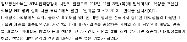 본문 시작 홈으로 SMIT 소식 SMIT 소개 SMIT 교육 SMIT 취업 SMIT 소식 SMIT 입학 홈페이지가이드 갤러리 공지사항 갤러리 경진대회 동아리 갤러리 페이스북 트위터 프린트 정보통신학부, 용두산정화활동 및 체육대회실시 오선진 7353 2014-04-15 정보통신학부, 용두산정화활동 및 체육대회실시 목록 이전정보통신학부, 취업박람회 견학 다음 정보통신학부, 2014학년도 졸업작품중간발표회 개최 담당부서 : 스마트IT학부 담당자 : - 연락처 : 043-649-1275 최종수정일 : 2024-10-26 만족도조사 만족도 조사 이 페이지에서 제공하는 정보에 대하여 만족하시나요? 매우만족 만족 보통 불만족 매우불만족