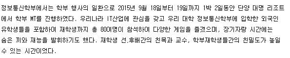본문 시작 홈으로 SMIT 소식 SMIT 소개 SMIT 교육 SMIT 취업 SMIT 소식 SMIT 입학 홈페이지가이드 갤러리 공지사항 갤러리 경진대회 동아리 갤러리 페이스북 트위터 프린트 한방-의료ICT 융합사업단, 캡스톤 디자인 경진대회 실시 관리자 6310 2015-09-30 한방-의료ICT 융합사업단, 캡스톤 디자인 경진대회 실시 목록 이전정보통신학부, "글로벌 정통 MT" 개최 다음 한방-의료ICT 융합사업단, 융합전공 동아리 오리엔테이션 진행 담당부서 : 스마트IT학부 담당자 : - 연락처 : 043-649-1275 최종수정일 : 2024-10-26 만족도조사 만족도 조사 이 페이지에서 제공하는 정보에 대하여 만족하시나요? 매우만족 만족 보통 불만족 매우불만족