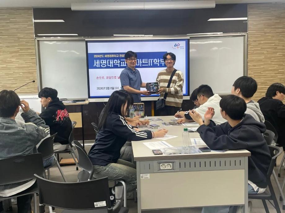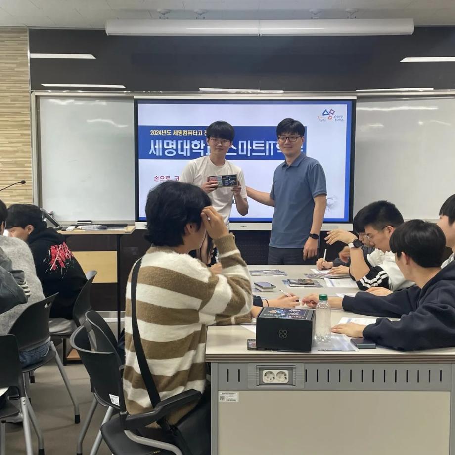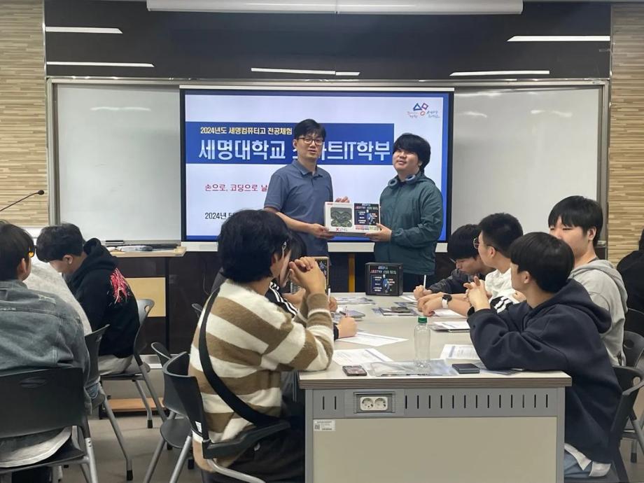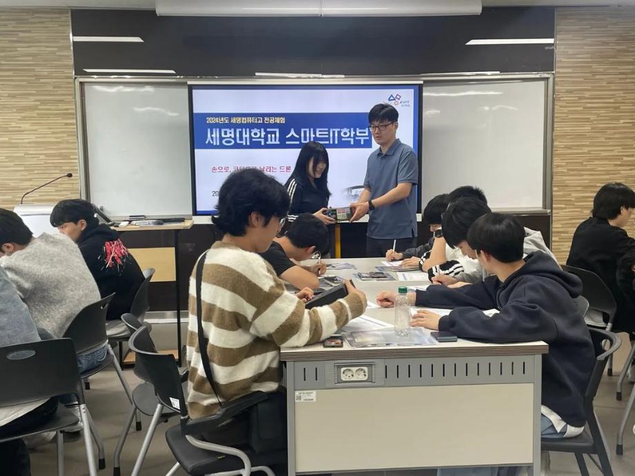 본문 시작 홈으로 SMIT 소식 SMIT 소개 SMIT 교육 SMIT 취업 SMIT 소식 SMIT 입학 홈페이지가이드 갤러리 공지사항 갤러리 경진대회 동아리 갤러리 페이스북 트위터 프린트 세명컴퓨터고등학교 전공 특강 시행 스마트IT학부 2885 2024-05-09 안녕하세요 세명대학교 스마트IT학부입니다🤗 2024년 5월 8일에 세명컴퓨터고등학교 학생들의 전공 체험 활동을 진행하였습니다. 세명대학교의 자매학교인 세명컴퓨터고등학교의 전공 체험 학습을 위해 스마트IT학부는 드론 축구와 드론 레이스를 진행했습니다. 게임의 우승자와 열심히 참여한 학생들에게 드론과 소정의 상품을 증정하였습니다. 목록 이전2024학년도 스마트IT학부 MT 다음 2024 청룡체전 담당부서 : 스마트IT학부 담당자 : - 연락처 : 043-649-1275 최종수정일 : 2024-10-26 만족도조사 만족도 조사 이 페이지에서 제공하는 정보에 대하여 만족하시나요? 매우만족 만족 보통 불만족 매우불만족