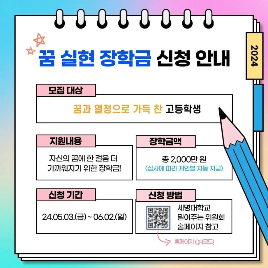 📌 세명대학교가 여러분의 꿈을 응원합니다! 💙꿈 실현 장학금💙 신청 안내