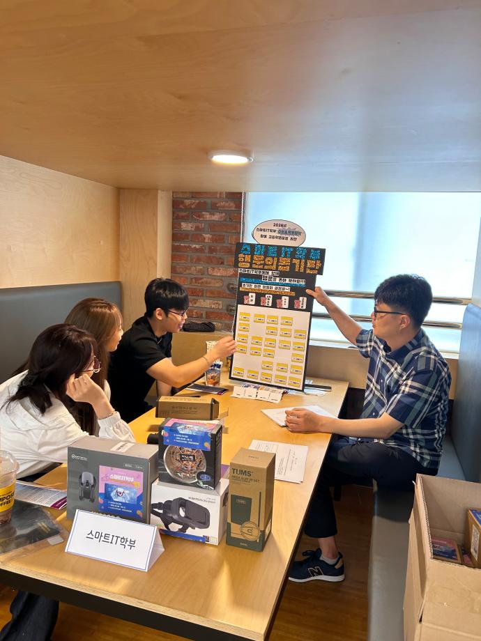 본문 시작 홈으로 SMIT 소식 SMIT 소개 SMIT 교육 SMIT 취업 SMIT 소식 SMIT 입학 홈페이지가이드 갤러리 공지사항 갤러리 경진대회 동아리 갤러리 페이스북 트위터 프린트 2025 세명고등학교 입시박람회 참여 스마트IT학부 1594 2025-07-16 스마트IT학부는 2025.07.15(화) 세명고등학교에서 진행하는 세명고 박람회에 참가하였습니다! 학생들이 자유롭게 입시상담 부스에 방문하여 스마트IT학부 입시 등에 대하여 한상익 교수님과 상담을 진행하였고, 상담을 받은 학생에 한하여 상품 경품 뽑기 참여기회를 주었습니다! 세명고 학생들에게 입시와 취업 전망 등에 대해 설명하는 유익한 시간이었습니다! 목록 이전CHARM인증제를 알려줘!⭐️ 다음 예비군훈련에 참가하는 학생(예비군)의 학업보장 담당부서 : 스마트IT학부 담당자 : - 연락처 : 043-649-1275 최종수정일 : 2024-10-26 만족도조사 만족도 조사 이 페이지에서 제공하는 정보에 대하여 만족하시나요? 매우만족 만족 보통 불만족 매우불만족