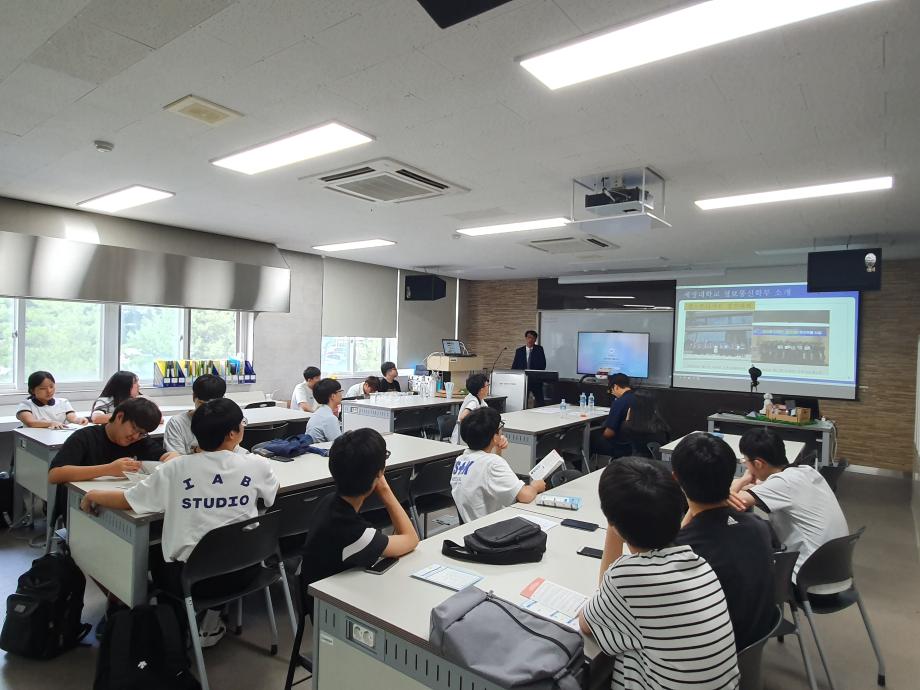 본문 시작 홈으로 SMIT 소식 SMIT 소개 SMIT 교육 SMIT 취업 SMIT 소식 SMIT 입학 홈페이지가이드 갤러리 공지사항 갤러리 경진대회 동아리 갤러리 페이스북 트위터 프린트 2019학년도 진로-진학 박람회 정보통신학부 6845 2019-07-19 지난 07월 12일 금요일에 정보통신학부에서는 세명대학교 제4회 진로-진학 박람회에 참가하였다. ‘정보통신학부 2019 캡스톤디자인 우수작 시연 및 감상’이라는 주제로 학부 교수님의 정보통신학부 소개 및 4학년 재학생들의 발표로 진행되었다. 참여 학생들은 약 40여명으로 제천고, 세명고, 제천여고 학생들이 참석하였다. 목록 이전2019학년도 하계방학 중 국제네트워크(CCNA) 전공자격증 특강 진행 다음 2018학년도 후기 학위수여식 개최 담당부서 : 스마트IT학부 담당자 : - 연락처 : 043-649-1275 최종수정일 : 2024-10-26 만족도조사 만족도 조사 이 페이지에서 제공하는 정보에 대하여 만족하시나요? 매우만족 만족 보통 불만족 매우불만족