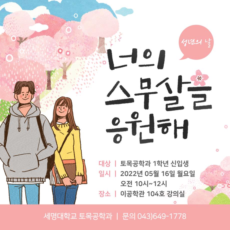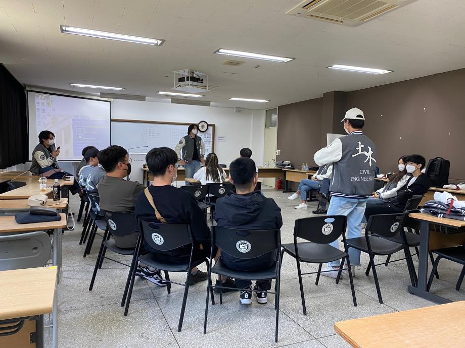 본문 시작 홈으로 커뮤니티 학과소개 교수소개 학과과정 커뮤니티 학과게시판 홈페이지가이드 포토갤러리 포토갤러리 전공자료실 학생회 동아리 포토갤러리 페이스북 트위터 프린트 2022학년도 신입생 성년의 날 토목공학과 3917 2022-05-18 지난 5월 16일, 토목공학과 재학생들은 2022학년도 신입생 학생들을 위해 성년의 날 행사를 진행하였습니다. 신입생 학생들을 위해 꽃다발과 선물을 준비하였고 학과 교수님들이 참여하셔서 함께 축하해주셨습니다. 신입생들의 소속감을 위해 과잠을 배부하였고 앞으로의 학교생활에 필요한 조언과 게임 진행을 통해 좀 더 친밀한 관계가 형성되었습니다. 행사 후에는 함께 점심식사를 하며 신입생들의 미래를 응원하는 자리가 되었습니다. 목록 이전학문간 융합을 위한 it엔지니어링대학 학술세미나 다음 2022학년도 스승의 날 담당부서 : 건설환경공학과 담당자 : - 연락처 : 043-649-1778 최종수정일 : 2024-10-26 만족도조사 만족도 조사 이 페이지에서 제공하는 정보에 대하여 만족하시나요? 매우만족 만족 보통 불만족 매우불만족