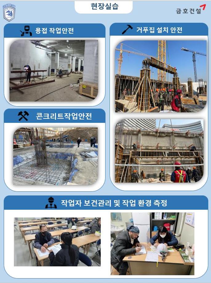 본문 시작 홈으로 커뮤니티 학과소개 진로 및 취업 교수소개 학과과정 커뮤니티 홈페이지가이드 포토갤러리 학과공지 학사일정 포토갤러리 학생회 학과영상 보건안전학과 인스타 보건안전학과 블로그 포토갤러리 페이스북 트위터 프린트 2022-동계 표준 현장실습 _ 금호건설 보건안전공학과 4745 2023-02-08 안전을 위한 우리들 "WE"한 차세대 안전보건전문가 현장체험!! 경기, 인천, 홍천 지역 현장으로 표준현장실습을 다녀왔습니다. 기간 : 2023. 1. 2. ~ 2023. 1. 31 목록 이전표준현장실습 발대식 다음 2022-전기 학위수여식 담당부서 : 보건안전학과 담당자 : - 연락처 : 043-649-1777 최종수정일 : 2024-10-26 만족도조사 만족도 조사 이 페이지에서 제공하는 정보에 대하여 만족하시나요? 매우만족 만족 보통 불만족 매우불만족