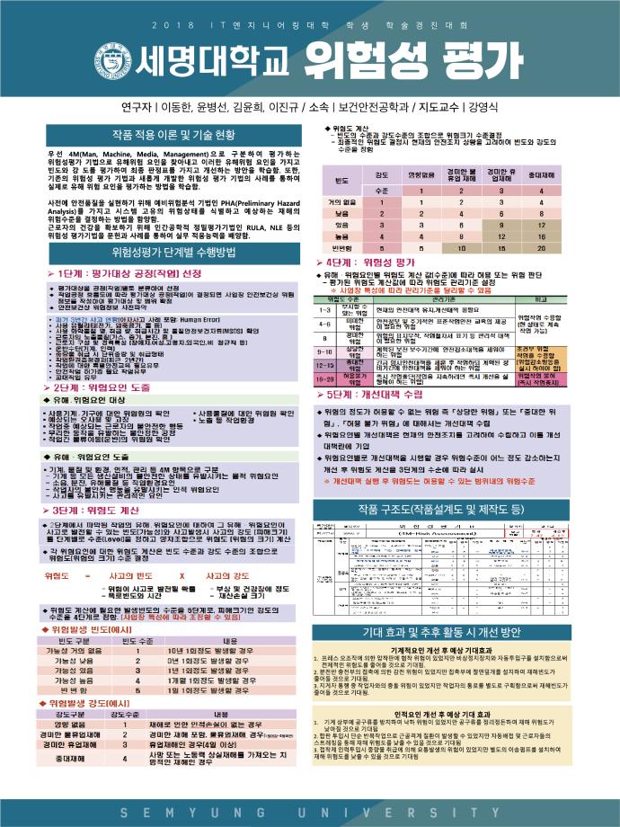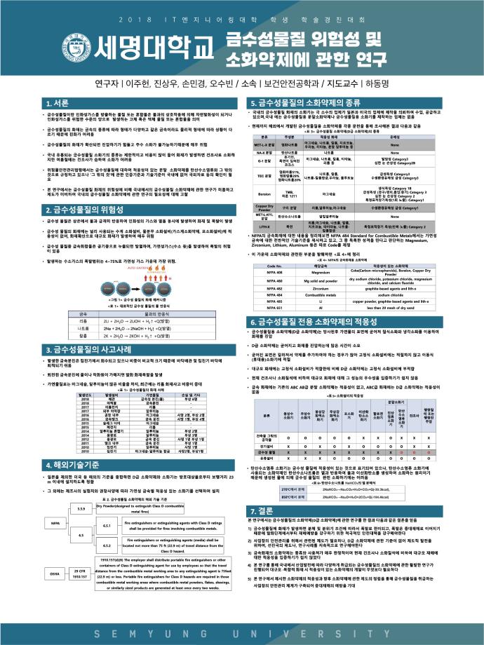 본문 시작 홈으로 커뮤니티 학과소개 진로 및 취업 교수소개 학과과정 커뮤니티 홈페이지가이드 포토갤러리 학과공지 학사일정 포토갤러리 학생회 학과영상 보건안전학과 인스타 보건안전학과 블로그 포토갤러리 페이스북 트위터 프린트 IT엔지니어링대학 학술발표대회 수상작 보건안전공학과 8062 2018-11-20 2018년 11월 1일 IT엔지니어링대학 학술발표대회 수상작 - 금 상 : Ethanol의 화재 · 폭발특성치의 측정 및 예측 양유환, 이원희, 김민정 - 장려상 : 금수성물질의 위험성과 소화약제에 관한 연구 이주헌,진상우,손민경,오수빈 -장려상 : 위험성 평가 이동한, 이진규, 윤병선, 김윤희 목록 이전제1회 IT엔지니어링대학 학술발표대회 다음 제 25회 세명대학교 보건안전공학과 학위수여식 담당부서 : 보건안전학과 담당자 : - 연락처 : 043-649-1777 최종수정일 : 2024-10-26 만족도조사 만족도 조사 이 페이지에서 제공하는 정보에 대하여 만족하시나요? 매우만족 만족 보통 불만족 매우불만족