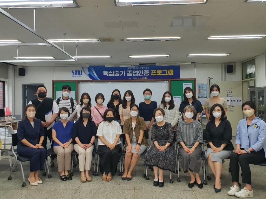 본문 시작 홈으로 커뮤니티 학과소개 교수소개 교육과정 학과소식 학과특성화 사업 커뮤니티 홈페이지가이드 포토갤러리 학사일정 포토갤러리 학생회 학과동아리 학과 취업정보 동창회 학과운영개선의견 발전기금 포토갤러리 페이스북 트위터 프린트 2022학년도 핵심술기 졸업인증 프로그램 간호학과 4046 2022-08-29 2022학년도 핵심술기 졸업인증 프로그램 - 일시 : 2022.08.23.(화) 09:00 ~ 17:00 - 장소 : 이학관 407호, 414호, 416호 - 대상 : 간호학과 4학년 졸업예정자 104명 간호학과 졸업생을 초청하여 모교방문의 날 행사 및 4학년 졸업예정자를 대상으로 핵심술기 졸업인증 프로그램을 진행하였다. 목록 이전2021학년도 기초 실습역량 강화 프로그램(카데바 실습) 다음 2022학년도 국내·외 보건의료정책변화 특강 담당부서 : 간호학과 담당자 : - 연락처 : 043-649-1357 최종수정일 : 2024-10-26 만족도조사 만족도 조사 이 페이지에서 제공하는 정보에 대하여 만족하시나요? 매우만족 만족 보통 불만족 매우불만족