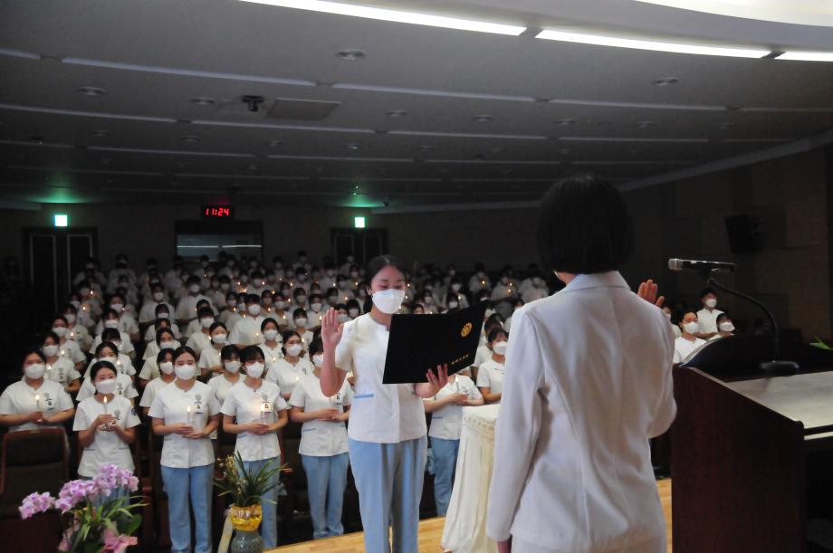 본문 시작 홈으로 커뮤니티 학과소개 교수소개 교육과정 학과소식 학과특성화 사업 커뮤니티 홈페이지가이드 포토갤러리 학사일정 포토갤러리 학생회 학과동아리 학과 취업정보 동창회 학과운영개선의견 발전기금 포토갤러리 페이스북 트위터 프린트 간호학과 제27회 나이팅게일 선서식 간호학과 4457 2022-09-20 간호학과 제27회 나이팅게일 선서식 - 일시: 2022년 9월 20일 화요일 - 장소: 제1컨퍼런스홀(학술관 112호) 목록 이전2022학년도 국내·외 보건의료정책변화 특강 다음 2022학년도 안전사고 예방교육 특강 담당부서 : 간호학과 담당자 : - 연락처 : 043-649-1357 최종수정일 : 2024-10-26 만족도조사 만족도 조사 이 페이지에서 제공하는 정보에 대하여 만족하시나요? 매우만족 만족 보통 불만족 매우불만족