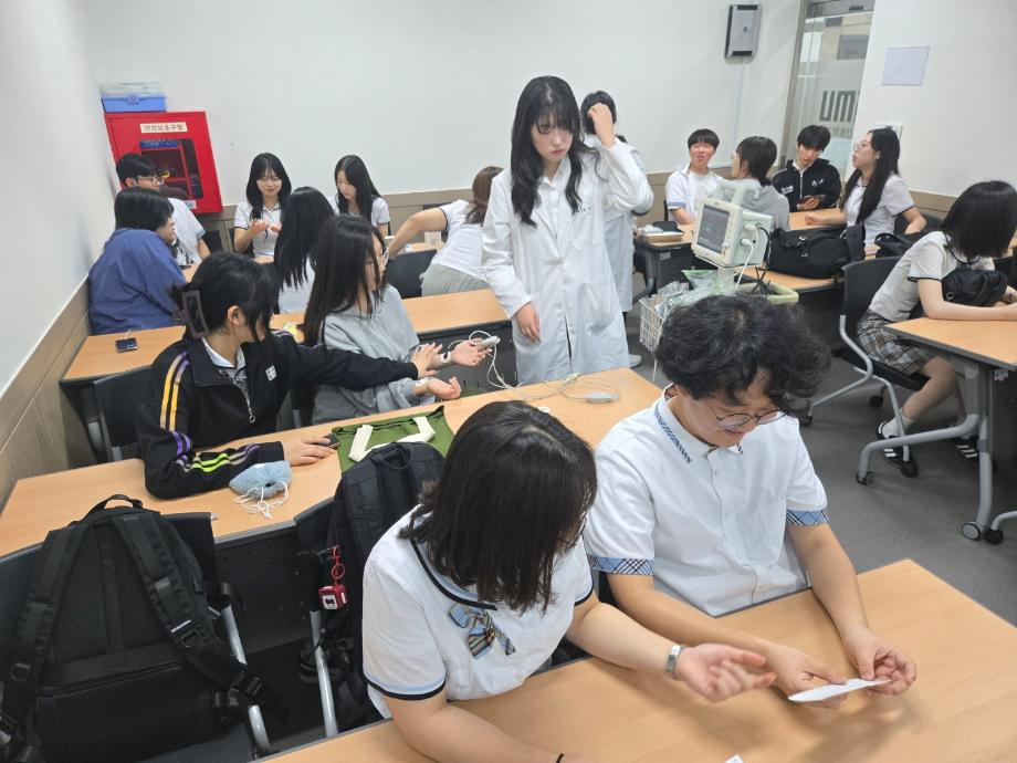 본문 시작 홈으로 커뮤니티 학과소개 교수소개 교육과정 학과소식 학과특성화 사업 커뮤니티 홈페이지가이드 포토갤러리 학사일정 포토갤러리 학생회 학과동아리 학과 취업정보 동창회 학과운영개선의견 발전기금 포토갤러리 페이스북 트위터 프린트 세명대학교 간호학과 전공 체험 프로그램_제천제일고등학교 간호학과 2403 2025-05-26 2025년 5월 20일(화), 제천제일고등학교 학생들이 미래의 간호사를 꿈꾸며 설레는 발걸음으로 세명대를 방문하였습니다. 시뮬레이션센터에서 진행된 전공 소개, 실습실에서의 근육주사, 혈당측정, 심전도 실습 체험까지 짧은 시간이었지만 많은 것을 배우고 느낄 수 있었던 소중한 시간이 되었기를 바랍니다. 오늘의 체험이 여러분의 진로를 한걸음 더 구체적으로 그려보는 계기가 되었기를 진심으로 응원합니다. 목록 이전세명대학교 간호학과, KOICA 민관협력 인큐베이팅 프로그램(아카데미 파트너), 몽골 울란바토르 현지 지역조사 성료 다음 29대 학생회 [파도] 기말고사 응원 간식 나눔 담당부서 : 간호학과 담당자 : - 연락처 : 043-649-1357 최종수정일 : 2024-10-26 만족도조사 만족도 조사 이 페이지에서 제공하는 정보에 대하여 만족하시나요? 매우만족 만족 보통 불만족 매우불만족