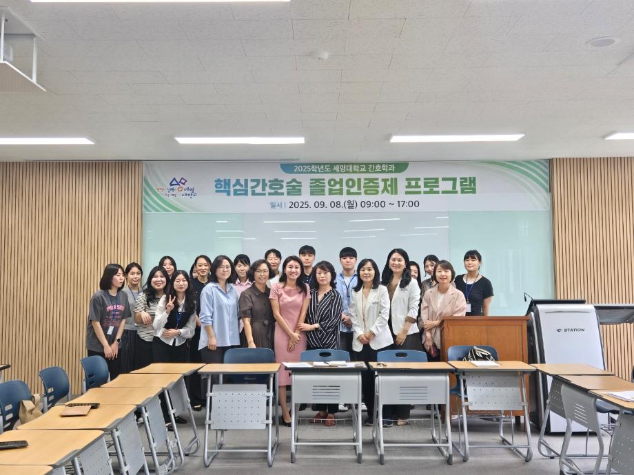 본문 시작 홈으로 커뮤니티 학과소개 교수소개 교육과정 학과소식 학과특성화 사업 커뮤니티 홈페이지가이드 포토갤러리 학사일정 포토갤러리 학생회 학과동아리 학과 취업정보 동창회 학과운영개선의견 발전기금 포토갤러리 페이스북 트위터 프린트 🎓 [2025학년도 핵심간호술 졸업인증제 – 선배님들의 모교 방문] 간호학과 1771 2025-09-08 오늘 간호학과에서는 졸업을 앞둔 4학년 학생들의 핵심간호술 졸업인증제를 위해 뜻깊은 시간을 가졌습니다. 바쁜 일정 속에서도 모교를 찾아와 후배들을 응원해주시고, 실무 경험에서 우러나온 조언과 따뜻한 격려를 전해주신 선배님들께 진심으로 감사드립니다. 목록 이전미래 간호사의 진로와 역할 전공 특강 다음 🎉 세명대학교 간호학과 30주년 기념행사 🎉 Nursing Bridge: 간호, 세대를 잇다 담당부서 : 간호학과 담당자 : - 연락처 : 043-649-1357 최종수정일 : 2024-10-26 만족도조사 만족도 조사 이 페이지에서 제공하는 정보에 대하여 만족하시나요? 매우만족 만족 보통 불만족 매우불만족