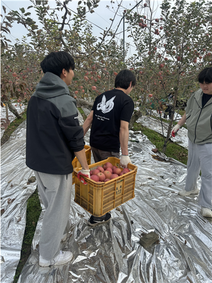 본문 시작 홈으로 커뮤니티 학과소개 교수소개 교육과정 학과소식 학과특성화 사업 커뮤니티 홈페이지가이드 포토갤러리 학사일정 포토갤러리 학생회 학과동아리 학과 취업정보 동창회 학과운영개선의견 발전기금 포토갤러리 페이스북 트위터 프린트 세명대학교 간호학과, 농촌 일손돕기 봉사활동 🍎 간호학과 2084 2025-11-11 세명대학교 간호학과 1학년 학생들은 11월 8일, 제천 지역 사과 농가를 찾아 농촌 일손돕기 봉사활동을 진행하였습니다. 학생들은 사과 수확을 도우며 농민들의 노고를 이해하고, 지역사회와 함께하는 나눔의 의미를 되새겼습니다. 이번 봉사활동을 통해 간호학과 학생들은 더불어 사는 공동체의 가치를 배우고 따뜻한 마음을 실천하는 시간을 가졌습니다. 목록 이전포항 동지여고 간호학과 전공체험 다음 세명대학교 간호학과 제30회 나이팅게일 선서식 🕯️ 담당부서 : 간호학과 담당자 : - 연락처 : 043-649-1357 최종수정일 : 2024-10-26 만족도조사 만족도 조사 이 페이지에서 제공하는 정보에 대하여 만족하시나요? 매우만족 만족 보통 불만족 매우불만족