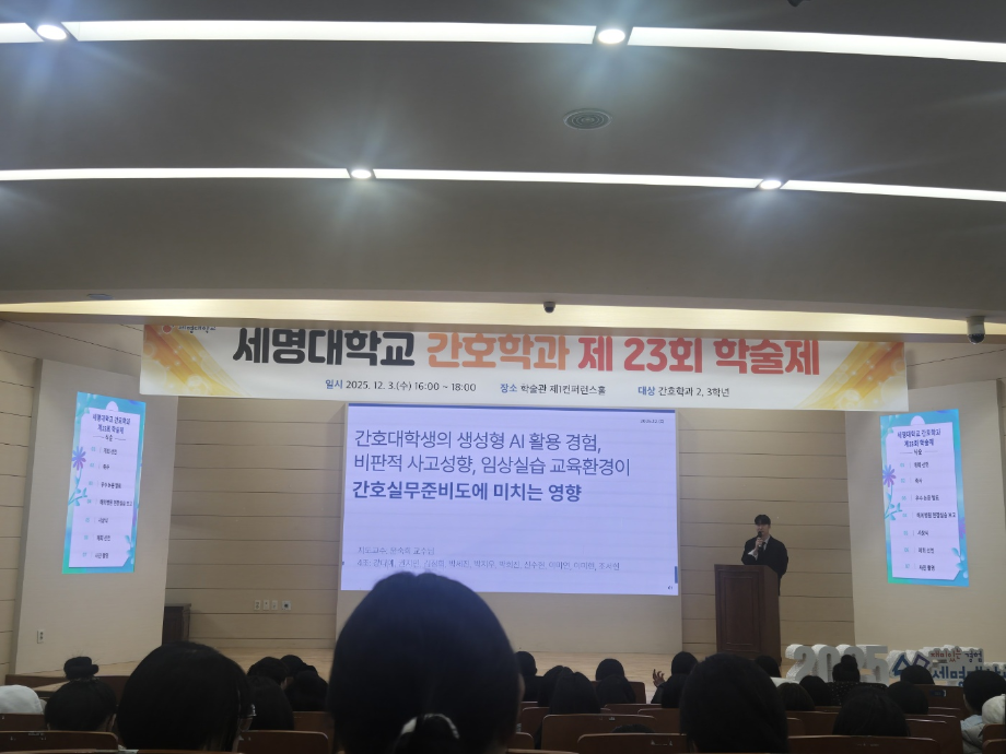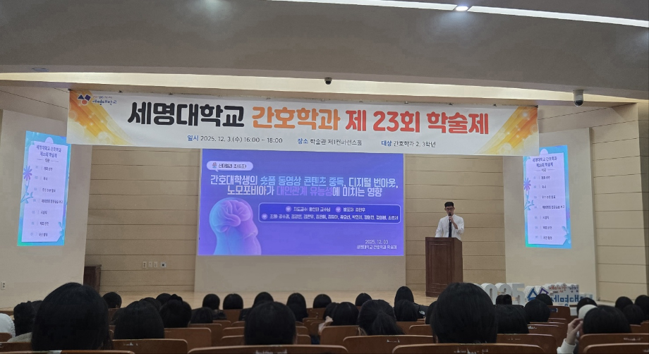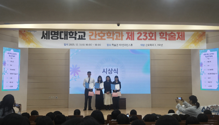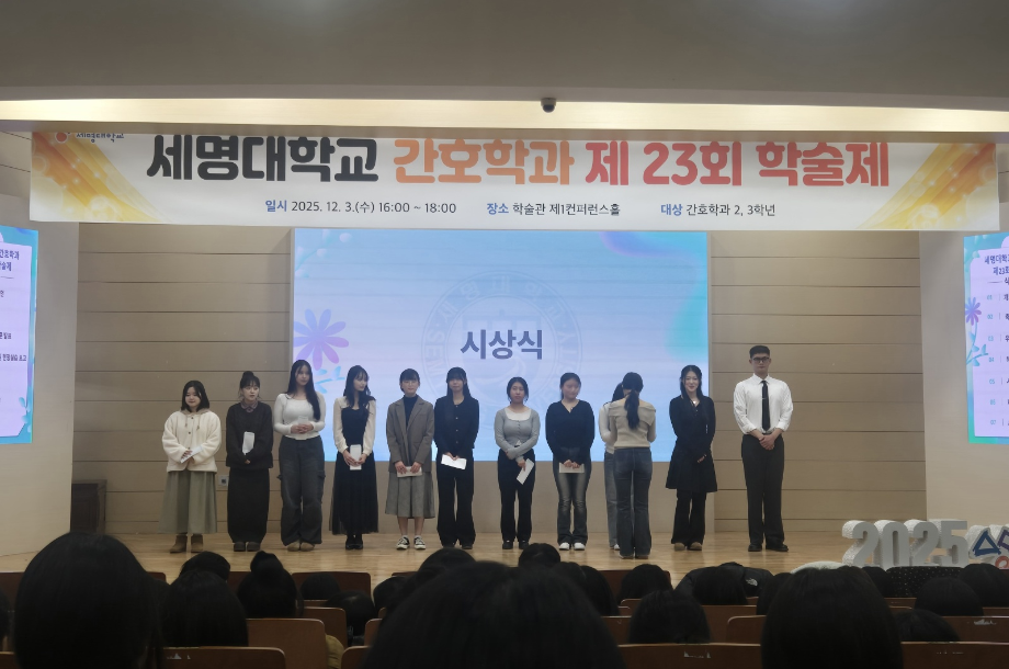 본문 시작 홈으로 커뮤니티 학과소개 교수소개 교육과정 학과소식 학과특성화 사업 커뮤니티 홈페이지가이드 포토갤러리 학사일정 포토갤러리 학생회 학과동아리 학과 취업정보 동창회 학과운영개선의견 발전기금 포토갤러리 페이스북 트위터 프린트 제 23회 간호학과 학술제 간호학과 2060 2025-12-08 12/3 진행된 📝 2024 학술제 발표와 ✈ 해외 인턴십 경험 공유 후기가 학과 블로그에 업로드되었습니다. 발표 현장과 생생한 경험담이 궁금하다면 아래 링크를 확인해주세요 👇 🔗 링크 https://blog.naver.com/nursing_smu_official/224099825798 목록 이전📍 ‘임상실습 안전사고 ZERO를 위하여’ 특강 다음 세명대학교 간호학과 제66회 간호사 국가시험 임장지도 실시 담당부서 : 간호학과 담당자 : - 연락처 : 043-649-1357 최종수정일 : 2024-10-26 만족도조사 만족도 조사 이 페이지에서 제공하는 정보에 대하여 만족하시나요? 매우만족 만족 보통 불만족 매우불만족