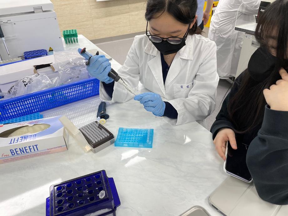 본문 시작 홈으로 커뮤니티 학과소개 학과과정 대학원 커뮤니티 연구동아리 홈페이지가이드 포토갤러리 학과공지 채용정보 학과일정 포토갤러리 유튜브 인스타그램 취업현황 학생회 조직도 졸업생 숏터뷰 포토갤러리 페이스북 트위터 프린트 2022 세명고등학교 과학실험 연구 프로그램(2차) 화장품뷰티학부 2941 2022-06-07 세명대학교 화장품학과(황형서 교수) 주관 2022 세명고등학교 과학 실험 특별프로그램 2차 활동이 5.27(금) 화장품학과 306호 실험실에서 있었습니다. 이날 세명고 학생들은 Central Dogma의 원리를 이해하고, Realtime RT-PCR 실험을 수행하였습니다. 세명고 학생들은 미래 생명공학 및 화장품과학자의 꿈을 미리 경험할 수 있는 뜻 깊은 시간이 되었습니다:) 목록 이전2022-1학기 화장품뷰티학부 캡스톤디자인 발표회 다음 화장품뷰티학부 화장품학 전공 주요 취업 현황 담당부서 : 바이오코스메틱학과 담당자 : - 연락처 : 043-649-1638 최종수정일 : 2024-10-26 만족도조사 만족도 조사 이 페이지에서 제공하는 정보에 대하여 만족하시나요? 매우만족 만족 보통 불만족 매우불만족