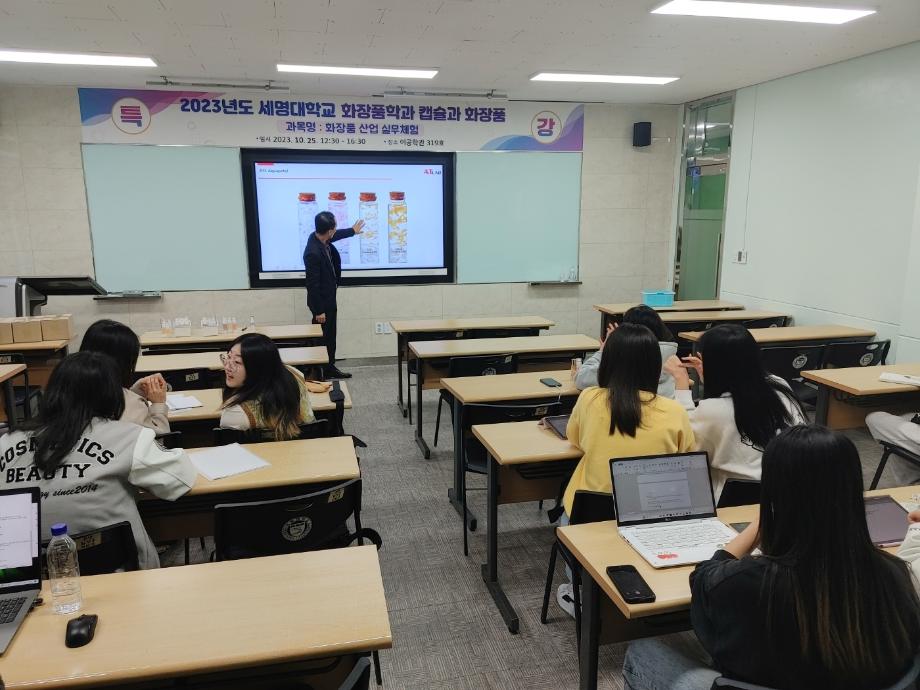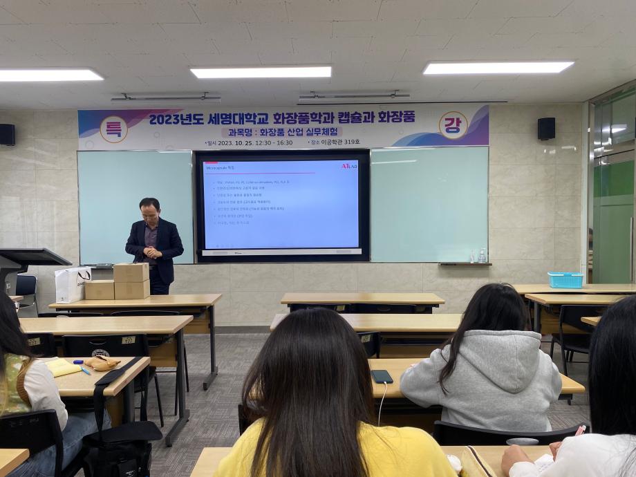 본문 시작 홈으로 커뮤니티 학과소개 학과과정 대학원 커뮤니티 연구동아리 홈페이지가이드 포토갤러리 학과공지 채용정보 학과일정 포토갤러리 유튜브 인스타그램 취업현황 학생회 조직도 졸업생 숏터뷰 포토갤러리 페이스북 트위터 프린트 2023학년도 2학기 화장품 산업 실무체험 제4회 전문가 초청 특강 화장품뷰티학부 2917 2023-10-27 2023학년도 2학기 화장품 산업 실무체험 교과목 전문가를 초청하여 4회차로 특강을 진행하였습니다. 2023년 10월 25일 수요일에 화장품과 캡슐이라는 주제로 특강을 진행하였고 특강을 맡아주신 강사님께서는 현재 (주) 에이티랩 대표이사로 계시는 김영택 대표님입니다. 목록 이전S-BOOT 전문가 초청 취업코칭 특강 다음 2023학년도 화장품산업실무체험 제5회 특강 담당부서 : 바이오코스메틱학과 담당자 : - 연락처 : 043-649-1638 최종수정일 : 2024-10-26 만족도조사 만족도 조사 이 페이지에서 제공하는 정보에 대하여 만족하시나요? 매우만족 만족 보통 불만족 매우불만족