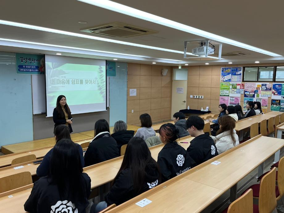 본문 시작 홈으로 커뮤니티 학과소개 학과과정 대학원 커뮤니티 연구동아리 홈페이지가이드 포토갤러리 학과공지 채용정보 학과일정 포토갤러리 유튜브 인스타그램 취업현황 학생회 조직도 졸업생 숏터뷰 포토갤러리 페이스북 트위터 프린트 2024학년도 바이오코스메틱학과 꿈설계학기 바이오코스메틱학과 2621 2024-02-22 세명대학교에서 2024년 2월 19일부터 21일까지 꿈설계학기를 진행하였습니다. 꿈설계학기동안 신입생들과 선후배 교수님과 소통하고 진로를 설계하며 전공에 관련한 화장품임상센터에서의 견학을 가지면서 학교를 알아가고 새로운 학우들과 서로 소통하는 시간을 가질 수 있었습니다. 목록 이전비교과프로그램 맞춤형화장품 오픈랩 행사 다음 2024학년도 보건바이오대학배 체육대회 담당부서 : 바이오코스메틱학과 담당자 : - 연락처 : 043-649-1638 최종수정일 : 2024-10-26 만족도조사 만족도 조사 이 페이지에서 제공하는 정보에 대하여 만족하시나요? 매우만족 만족 보통 불만족 매우불만족