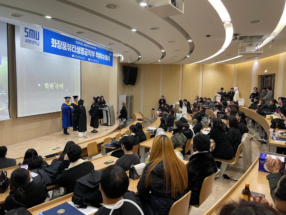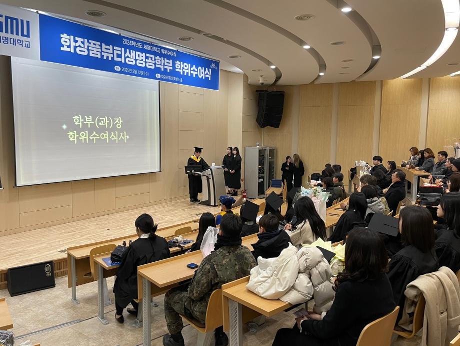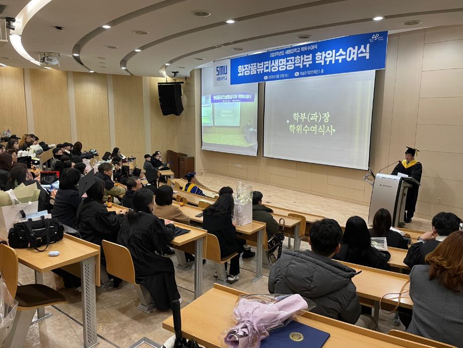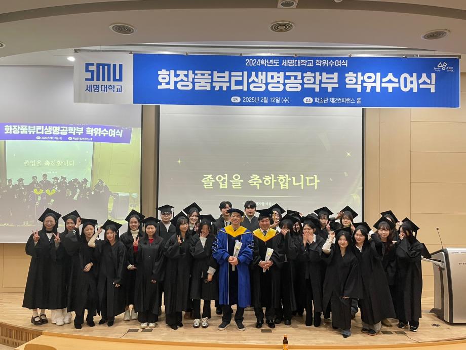 본문 시작 홈으로 커뮤니티 학과소개 학과과정 대학원 커뮤니티 연구동아리 홈페이지가이드 포토갤러리 학과공지 채용정보 학과일정 포토갤러리 유튜브 인스타그램 취업현황 학생회 조직도 졸업생 숏터뷰 포토갤러리 페이스북 트위터 프린트 2024학년도 전기 학위수여식 바이오코스메틱학과 2064 2025-02-17 2024학년도 전기 화장품 뷰티생명공학부 학위수여식을 2025년 2월12일 학술관 제 2컨퍼런스 홀에서 진행하였습니다. 학과수석 임지은 학생을 포함하여 뷰티생명공학전공 11명, 화장품과학전공 23명 이 날 총 졸업생 35명이 전공 학사 학위를 수여받았습니다. 목록 이전「지자체-대학 협력기반 지역혁신사업」제5회 프로젝트랩 캡스톤디자인 경진대회 최우수상 · 우수상 수상 다음 2024 전기 화장품과학과(대학원) 석사 학위수여식 담당부서 : 바이오코스메틱학과 담당자 : - 연락처 : 043-649-1638 최종수정일 : 2024-10-26 만족도조사 만족도 조사 이 페이지에서 제공하는 정보에 대하여 만족하시나요? 매우만족 만족 보통 불만족 매우불만족