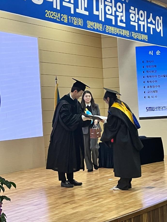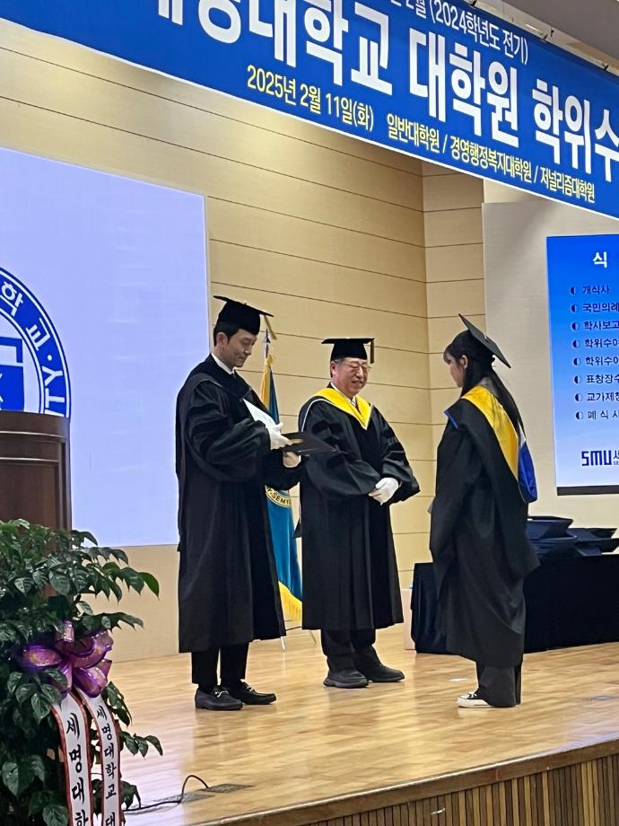 본문 시작 홈으로 커뮤니티 학과소개 학과과정 대학원 커뮤니티 연구동아리 홈페이지가이드 포토갤러리 학과공지 채용정보 학과일정 포토갤러리 유튜브 인스타그램 취업현황 학생회 조직도 졸업생 숏터뷰 포토갤러리 페이스북 트위터 프린트 2024 전기 화장품과학과(대학원) 석사 학위수여식 바이오코스메틱학과 2434 2025-02-17 2024학년도 전기 대학원 학위 수여식이 2025년 2월11일 학술관에서 진행되었습니다. 이번 전기 대학원 학위수여식 화장품과학과 졸업 학생은 대학원 석사 10명입니다. 그 중에 이소미, 한예주 학생이 연구업적 우수 총창님 표창을 수상 받았습니다. 총 대학원 학석사연계과정이 3명, 석사과정이 7명이 석사 학위를 수여받았습니다. 목록 이전2024학년도 전기 학위수여식 다음 2025학년도 꿈설계학기 담당부서 : 바이오코스메틱학과 담당자 : - 연락처 : 043-649-1638 최종수정일 : 2024-10-26 만족도조사 만족도 조사 이 페이지에서 제공하는 정보에 대하여 만족하시나요? 매우만족 만족 보통 불만족 매우불만족