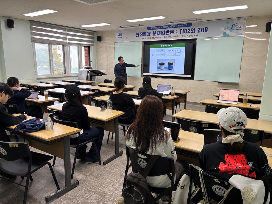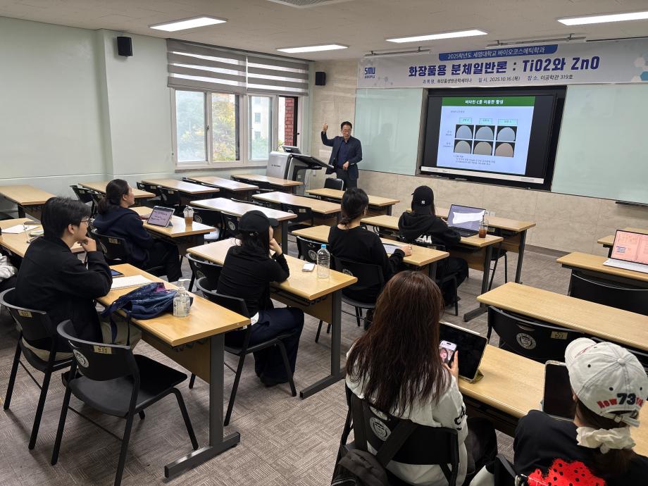 본문 시작 홈으로 커뮤니티 학과소개 학과과정 대학원 커뮤니티 연구동아리 홈페이지가이드 포토갤러리 학과공지 채용정보 학과일정 포토갤러리 유튜브 인스타그램 취업현황 학생회 조직도 졸업생 숏터뷰 포토갤러리 페이스북 트위터 프린트 2025학년도 3차 화장품생명공학세미나 바이오코스메틱학과 1368 2025-10-17 2025학년도 3차 화장품생명공학세미나를 진행했습니다. 목록 이전2025학년도 2차 S-BOOT 특강_Evolution of K-Beauty 다음 2025학년도 F.P.L 동아리 클렌징 오일 및 클렌징 밤 제조 실습 담당부서 : 바이오코스메틱학과 담당자 : - 연락처 : 043-649-1638 최종수정일 : 2024-10-26 만족도조사 만족도 조사 이 페이지에서 제공하는 정보에 대하여 만족하시나요? 매우만족 만족 보통 불만족 매우불만족