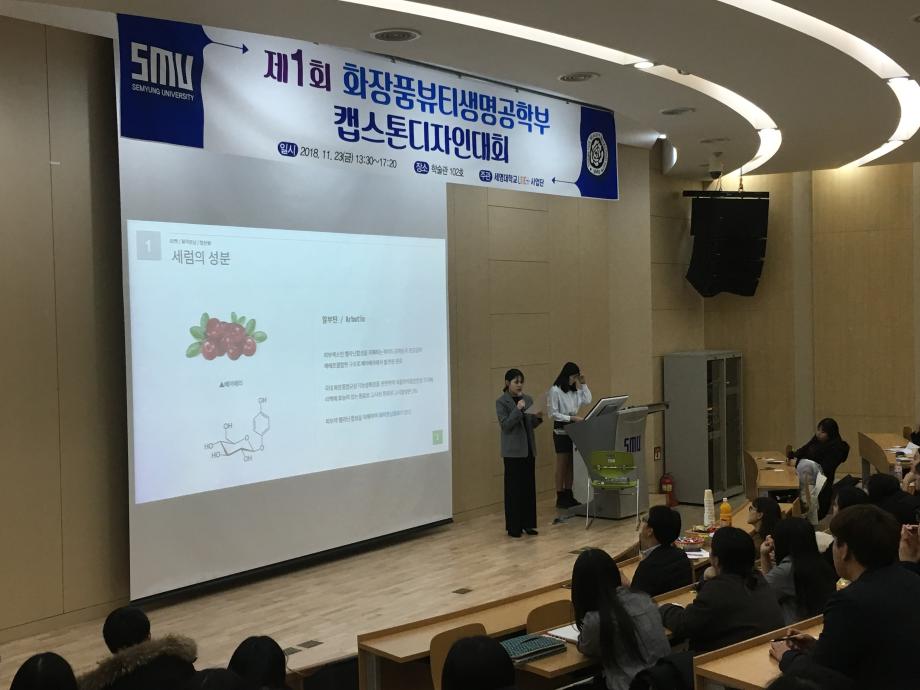 본문 시작 홈으로 커뮤니티 학과소개 학과과정 대학원 커뮤니티 연구동아리 홈페이지가이드 포토갤러리 학과공지 채용정보 학과일정 포토갤러리 유튜브 인스타그램 취업현황 학생회 조직도 졸업생 숏터뷰 포토갤러리 페이스북 트위터 프린트 제1회 화장품뷰티생명공학부 캡스톤 디자인 대회 화장품뷰티생명공학부 7446 2018-12-04 지난 11월 23일 학술관 102호에서 장혜인 교수님의 지도하에 제1회 캡스톤디자인 대회가 열렸습니다. 총 17개 조가 참가하여 다양한 화장품에 대한 아이디어를 발표하였고 항목별로 평가하는 시간을 가졌습니다. 발표하는 학생뿐만 아니라 평가를 하는 학생들도 질문과 답변을 주고 받으며 열의가 돋보이는 발표시간이었습니다. 목록 이전제4회 국내 화장품전문가 초청 세미나 다음 2018 동계 LINC+ 바이오산업품질관리학 학술 특강 담당부서 : 바이오코스메틱학과 담당자 : - 연락처 : 043-649-1638 최종수정일 : 2024-10-26 만족도조사 만족도 조사 이 페이지에서 제공하는 정보에 대하여 만족하시나요? 매우만족 만족 보통 불만족 매우불만족