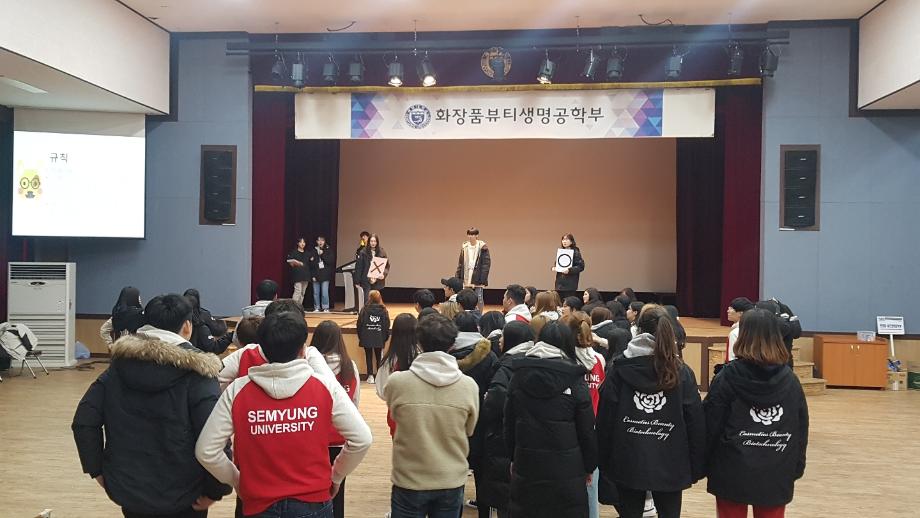 본문 시작 홈으로 커뮤니티 학과소개 학과과정 대학원 커뮤니티 연구동아리 홈페이지가이드 포토갤러리 학과공지 채용정보 학과일정 포토갤러리 유튜브 인스타그램 취업현황 학생회 조직도 졸업생 숏터뷰 포토갤러리 페이스북 트위터 프린트 2019 꿈설계학기 화장품뷰티생명공학부 7464 2019-02-25 지난 2월 18일 부터 4일간의 신입생 꿈 설계학기가 시작되었습니다. 신입생들이 학과소개 및 레크레이션등을 통하여 교수님, 선배들과 유대감을 쌓았고 다양한 안내 및 전공체험 프로그램에 참석하여 학교 생활에 대한 안내를 받는 유익한 시간을 보냈습니다. 목록 이전2019년도 제2회 화장품트랙 (한방바이오융학과학부) 졸업식 다음 2019-1 시상식 및 개강총회 담당부서 : 바이오코스메틱학과 담당자 : - 연락처 : 043-649-1638 최종수정일 : 2024-10-26 만족도조사 만족도 조사 이 페이지에서 제공하는 정보에 대하여 만족하시나요? 매우만족 만족 보통 불만족 매우불만족