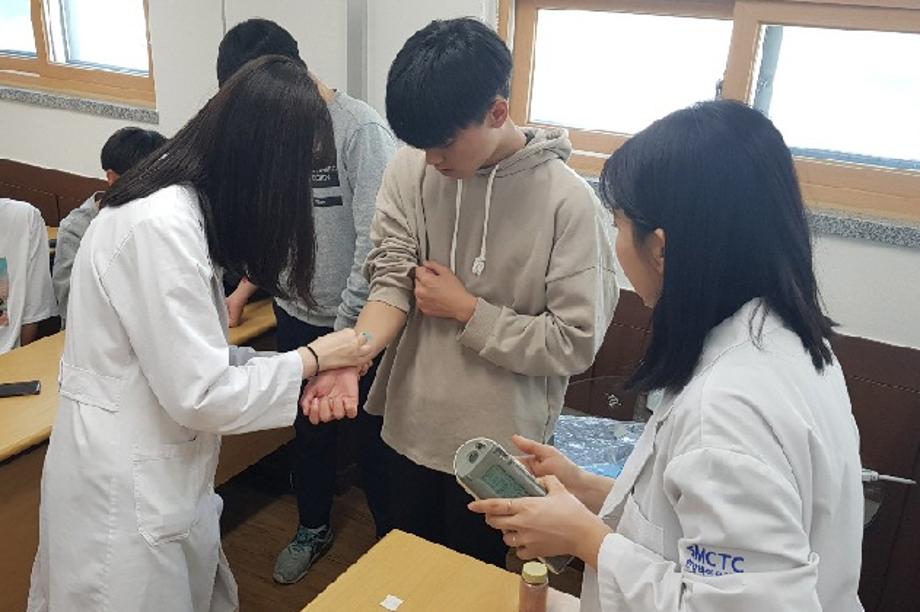 본문 시작 홈으로 커뮤니티 학과소개 학과과정 대학원 커뮤니티 연구동아리 홈페이지가이드 포토갤러리 학과공지 채용정보 학과일정 포토갤러리 유튜브 인스타그램 취업현황 학생회 조직도 졸업생 숏터뷰 포토갤러리 페이스북 트위터 프린트 충주 대원고등학교 중등연계 프로그램 화장품뷰티생명공학부 7055 2019-05-03 충주 대원고등학교에서 중등교육연계프로그램으로 세명대학교 화장품뷰티생명공학부를 방문했습니다. 화장품뷰티생명공학부 전공체험을 희망한 학생은 35명이었습니다. 우리 학부의 김용민 교수님께서 진행하에 IC센터에서 화장품임상시험 실습시간을 가졌고, 학부 및 교수님을 소개하는 시간도 가졌습니다. 오늘 실습한 내용은 [내 피부색 측정하기], [자외선차단제는 진짜 자외선을 차단하는가?] 등으로 대원고 학생들이 흥미로워하며 실습에 참여하였습니다. 목록 이전2019-1 성적우수장학생의 공부비법 특강 다음 의림여자중학교 중등연계 프로그램 시행 담당부서 : 바이오코스메틱학과 담당자 : - 연락처 : 043-649-1638 최종수정일 : 2024-10-26 만족도조사 만족도 조사 이 페이지에서 제공하는 정보에 대하여 만족하시나요? 매우만족 만족 보통 불만족 매우불만족