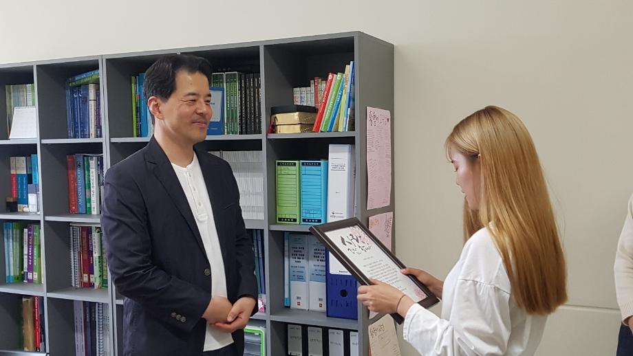 본문 시작 홈으로 커뮤니티 학과소개 학과과정 대학원 커뮤니티 연구동아리 홈페이지가이드 포토갤러리 학과공지 채용정보 학과일정 포토갤러리 유튜브 인스타그램 취업현황 학생회 조직도 졸업생 숏터뷰 포토갤러리 페이스북 트위터 프린트 스승의 날, 학생회에서 준비한 행사 화장품뷰티생명공학부 7565 2019-05-15 화장품뷰티생명공학부의 학생회에서 스승의 날을 맞이하여, 교수님들께 학생들을 대표하여 감사의 마음을 전하는 시간을 가졌습니다. 존경의 마음을 담은 예쁜 꽃과 롤링페이퍼를 준비한 우리 학생들 덕분에 교수님들과 얼굴에 웃음꽃이 피었습니다. 조교들까지 챙겨준 학생회 친구들 덕분에 더 열심히 일해야겠습니다^^ 목록 이전의림여자중학교 중등연계 프로그램 시행 다음 제29회 청룡체전 시행 담당부서 : 바이오코스메틱학과 담당자 : - 연락처 : 043-649-1638 최종수정일 : 2024-10-26 만족도조사 만족도 조사 이 페이지에서 제공하는 정보에 대하여 만족하시나요? 매우만족 만족 보통 불만족 매우불만족