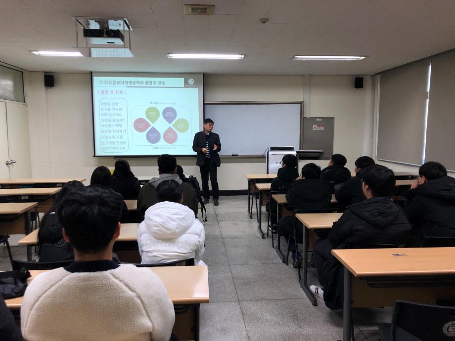 본문 시작 홈으로 커뮤니티 학과소개 학과과정 대학원 커뮤니티 연구동아리 홈페이지가이드 포토갤러리 학과공지 채용정보 학과일정 포토갤러리 유튜브 인스타그램 취업현황 학생회 조직도 졸업생 숏터뷰 포토갤러리 페이스북 트위터 프린트 수산중학교 학생들과 함께하는 전공체험 워크샵 화장품뷰티생명공학부 8514 2019-12-02 수산중학교 12명(1~3학년)의 학생들이 전공을 체험하러 이공학관 3층으로 찾아왔습니다. 학생들은 이공학관 305호에서 교수님 소개와 화장품뷰티생명공학부 소개를 들었습니다. 그 후 우리 학부의 실험실과 한방바이오산업 임상지원센터도 견학하였습니다. 학생들에게는 직접 보고 체험하면서 기억에 남을 특별한 시간이었습니다. ^^ 목록 이전제1회 화장품뷰티생명공학부 전공체험 워크샵 다음 2019년 화장품뷰티생명공학부 캡스톤디자인대회 담당부서 : 바이오코스메틱학과 담당자 : - 연락처 : 043-649-1638 최종수정일 : 2024-10-26 만족도조사 만족도 조사 이 페이지에서 제공하는 정보에 대하여 만족하시나요? 매우만족 만족 보통 불만족 매우불만족