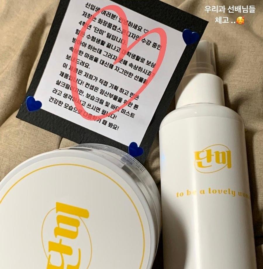 화장품뷰티생명공학부에서는 입학 후 학교에 오지 못한 신입생들을 위해서 선배들이 화장품을 선물해 주었는데요!