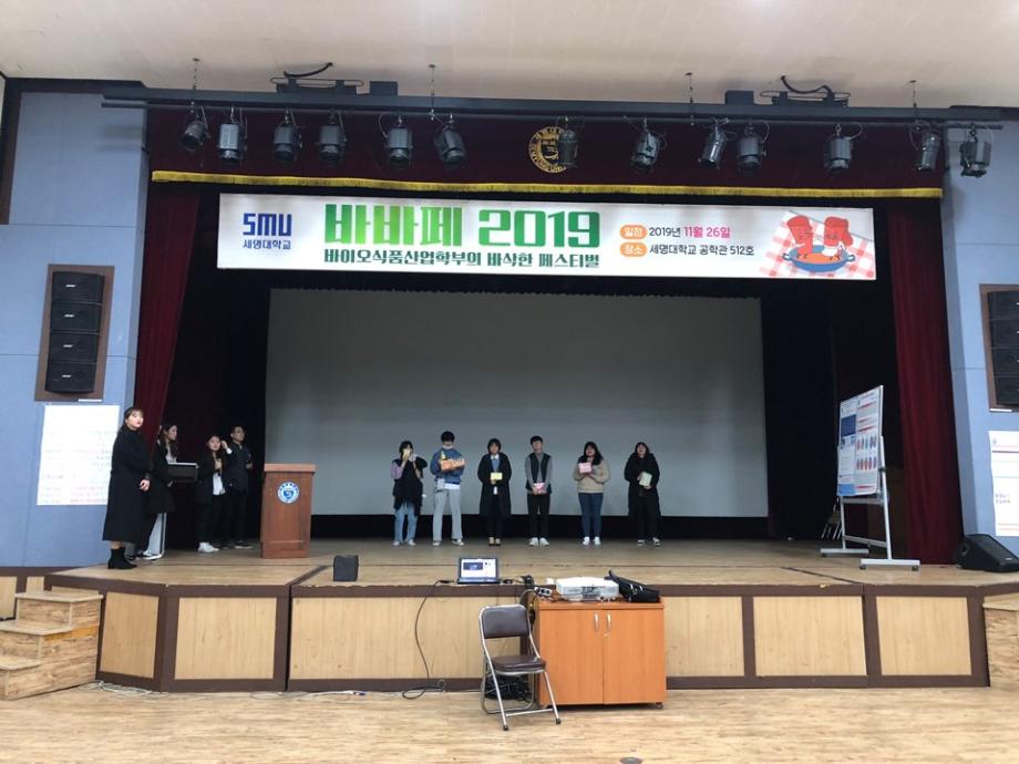 본문 시작 홈으로 커뮤니티 학부소개 진로·취업 교육과정 커뮤니티 대학원 입학상담 홈페이지가이드 갤러리 공지사항 문의게시판 학생회 전공동아리 동문회 갤러리 전공자료실 Youtube Instagram Facebook Blog 갤러리 페이스북 트위터 프린트 2019 바바페 (바이오식품산업학부 학술제) 바이오식품산업학부 5861 2019-11-28 2019년 11월 26일(화) 공학관 512호에서 진행된 바이오식품산업학부 바삭한 페스티발에 재학생 약 190명이 참여했으며 조리경연대회, 논문 및 현장실습 발표, O/X퀴즈를 진행하였다. 목록 이전실험조리 프로젝트 3( 단체급식용 샌드위치 제조 판매)실시 다음 학생경험중심 발표회 담당부서 : 바이오식품산업학부 담당자 : - 연락처 : 043-649-1431 최종수정일 : 2024-10-26 만족도조사 만족도 조사 이 페이지에서 제공하는 정보에 대하여 만족하시나요? 매우만족 만족 보통 불만족 매우불만족